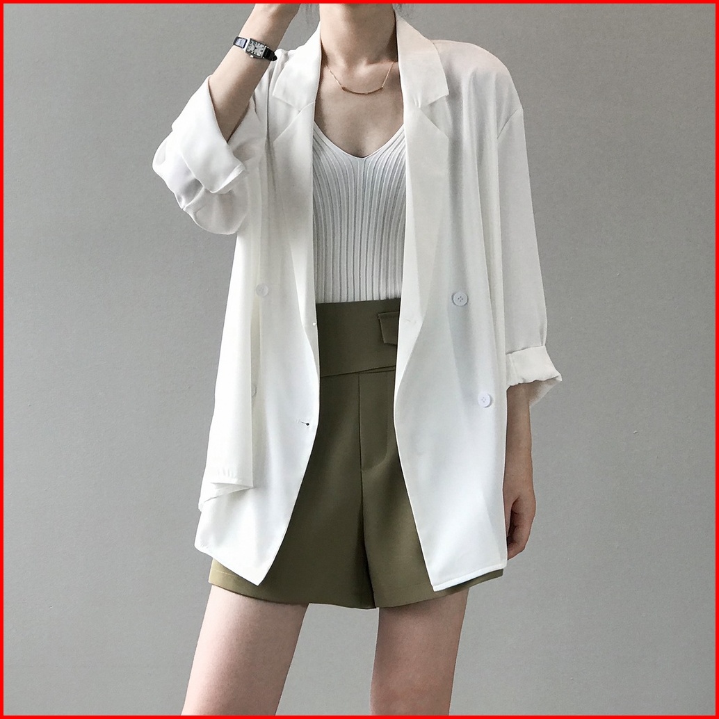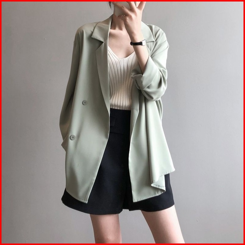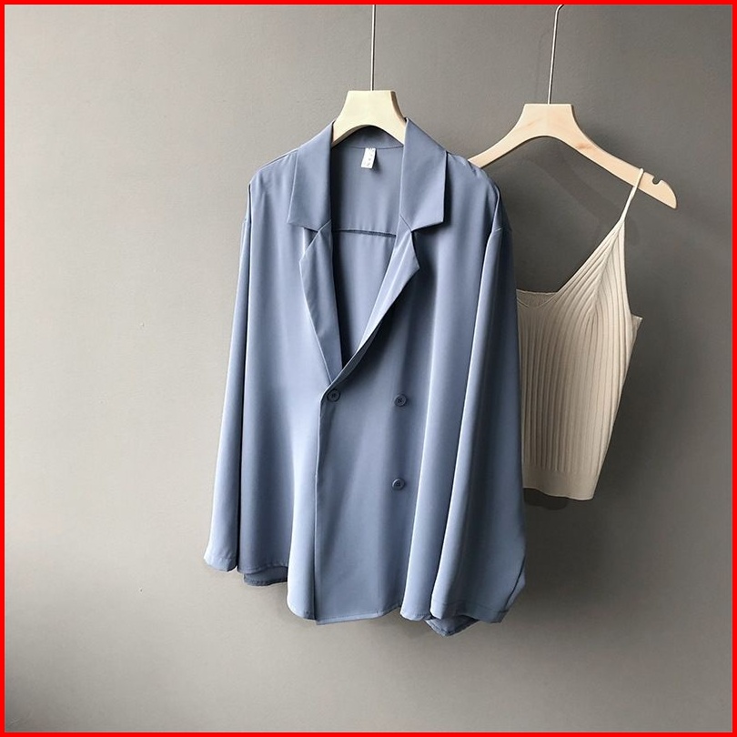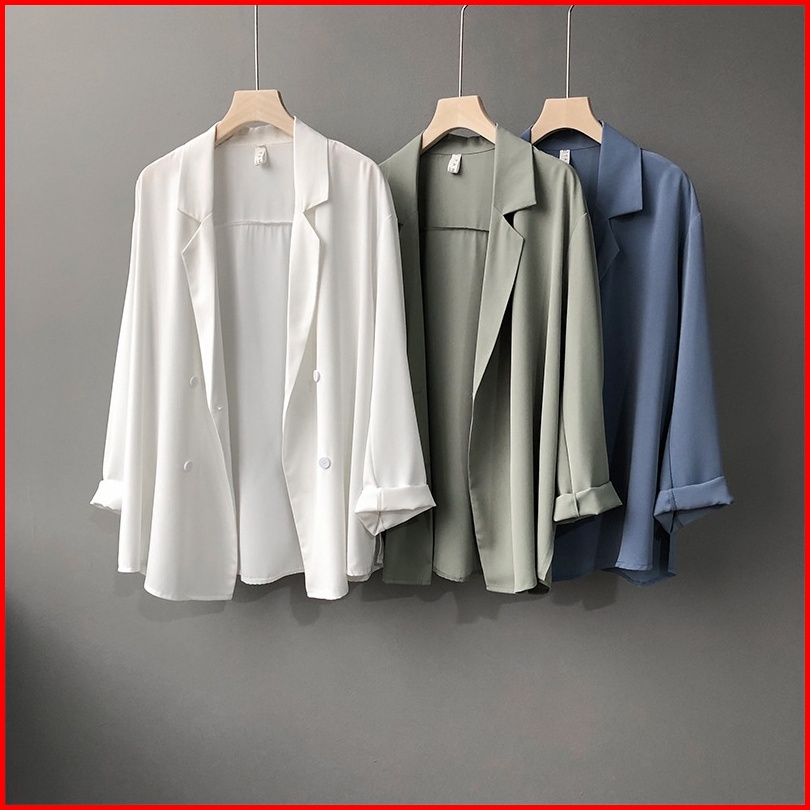 Jas Tabir Surya Jas Tipis Desain Longgar Tirai Blazer