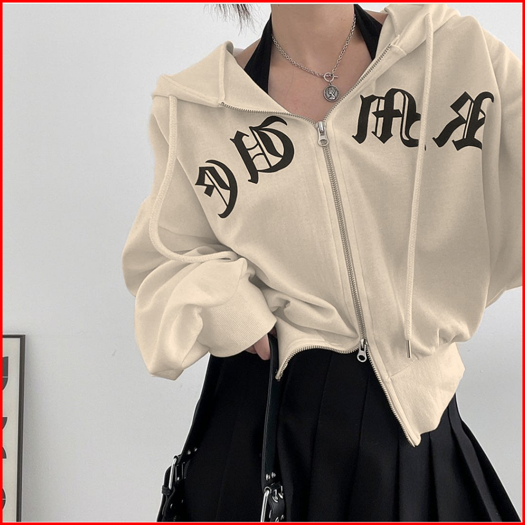 Japanese Hoodie Ziper Wanita Oversize Sweater Jaket Double Ziper Kekinian Korean Style