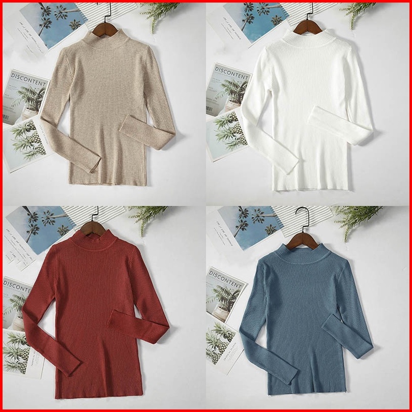 Sweater Rajut Lengan Panjang Ramping Wanita Korea Cocok Untuk Semua Ukuran Dengan Elastisitas Tinggi