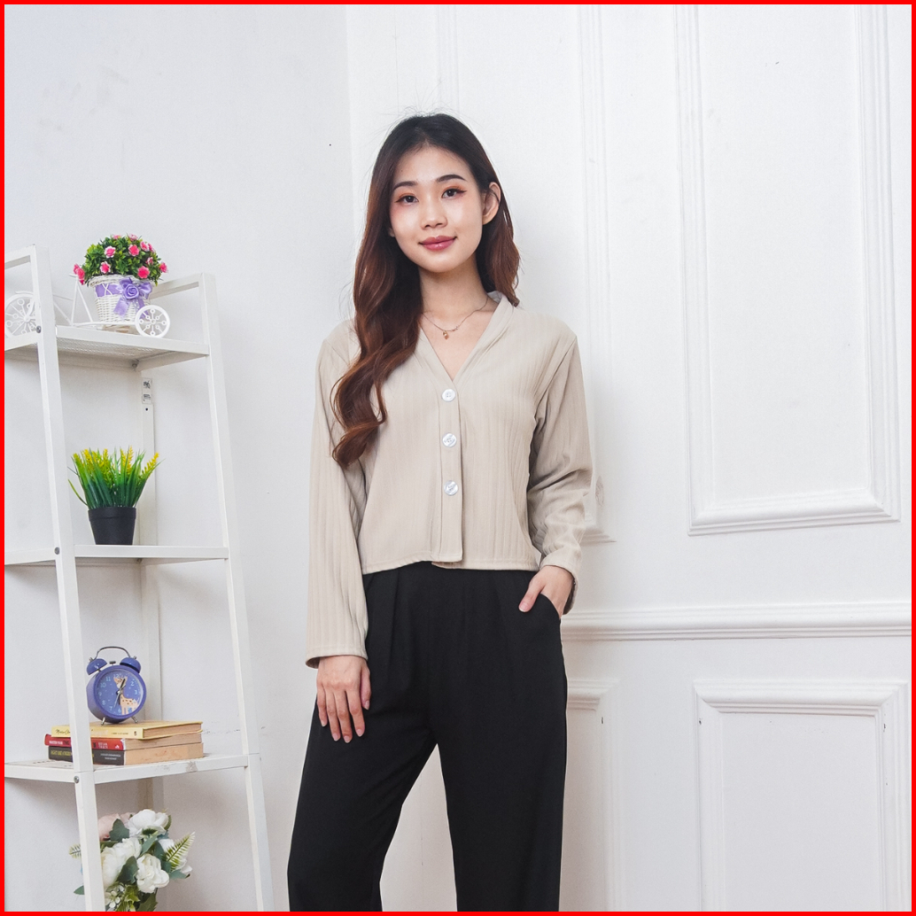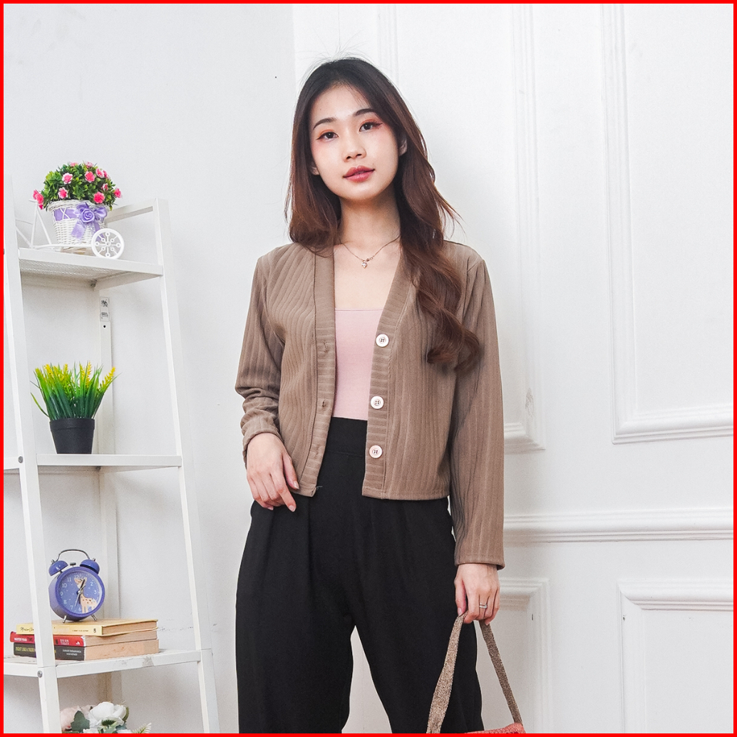 Crop Cardigan Wannes Bahan Knit Premium Outer Top Knitwear