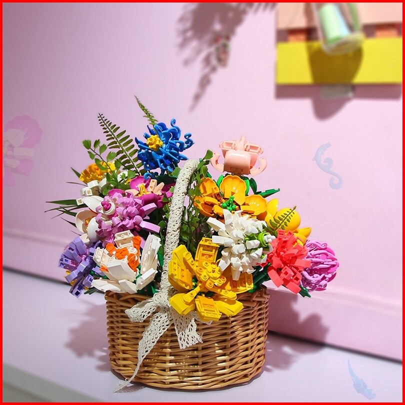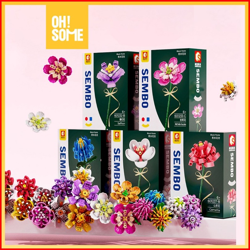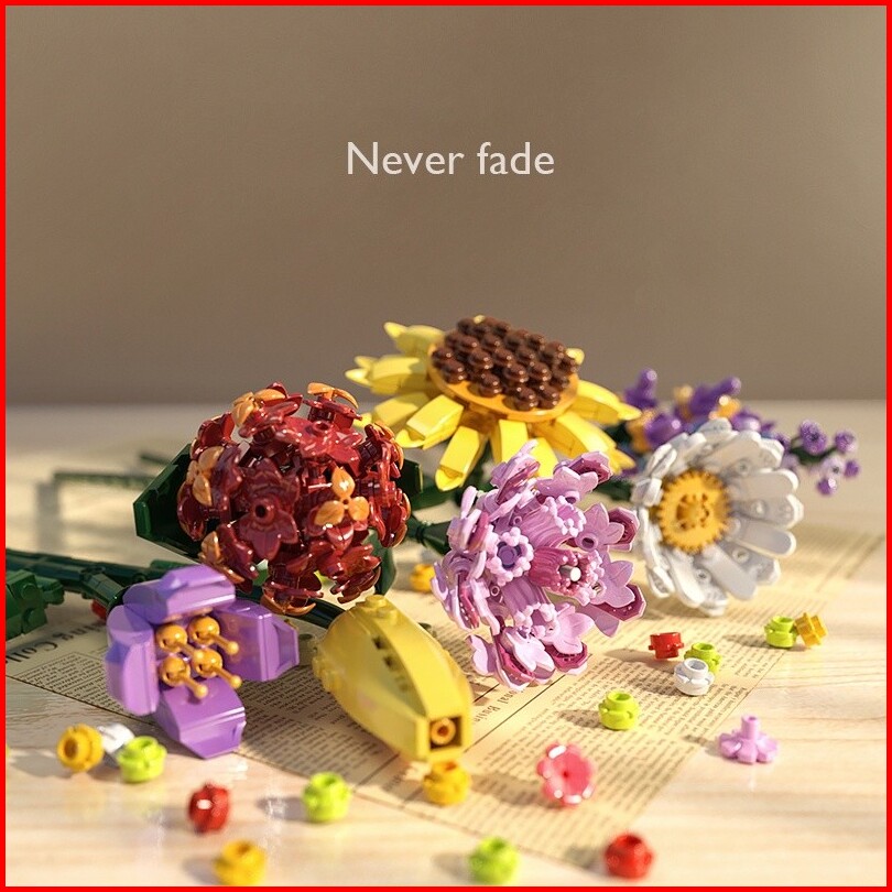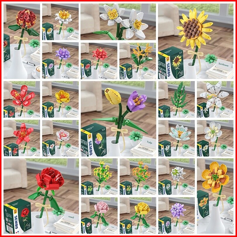 Ohsome -sembo Building Blocks Flowers Bouquet Gift Warna Bunga Dikirimkan Acak