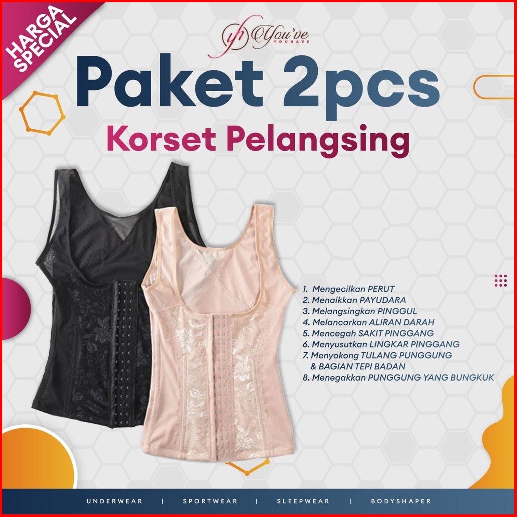 Youhave Paket 2pcs Long Torso Body Shaper Korset Pelangsing Stagen Perut Wanita Korset Badan 58028