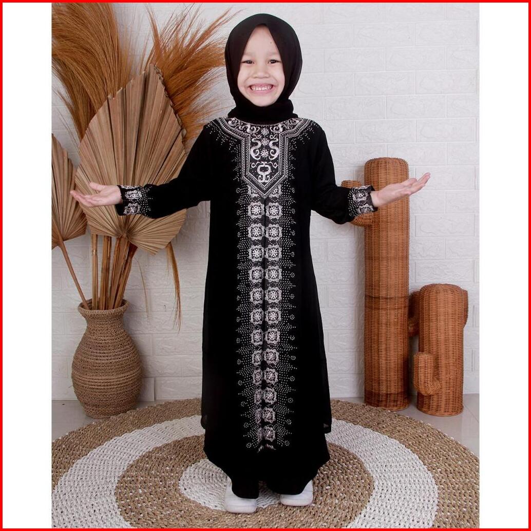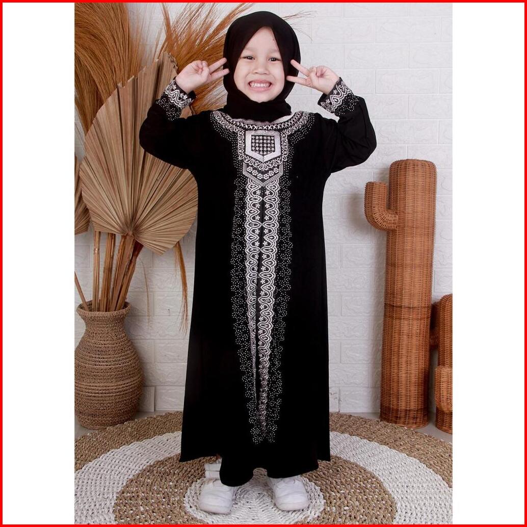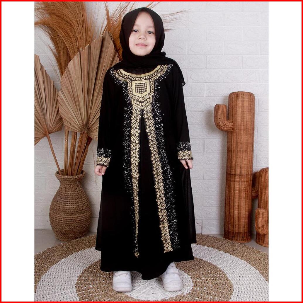 Dungdungkids Gamis Abaya Anak Jetblack Bordir Payet Free Jilbab Segitiga 3 - 10 Tahun