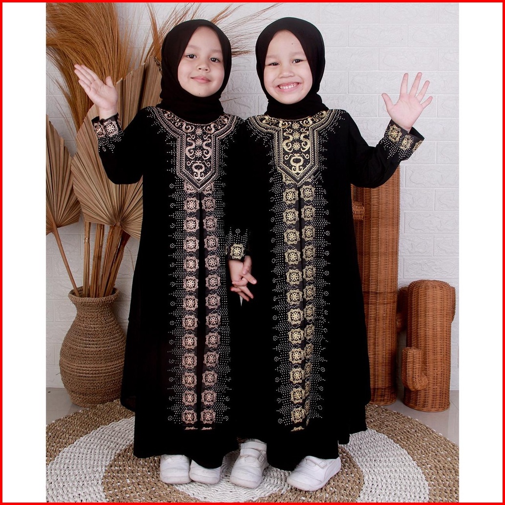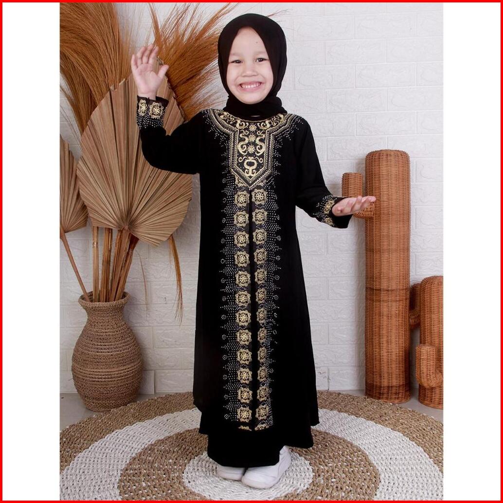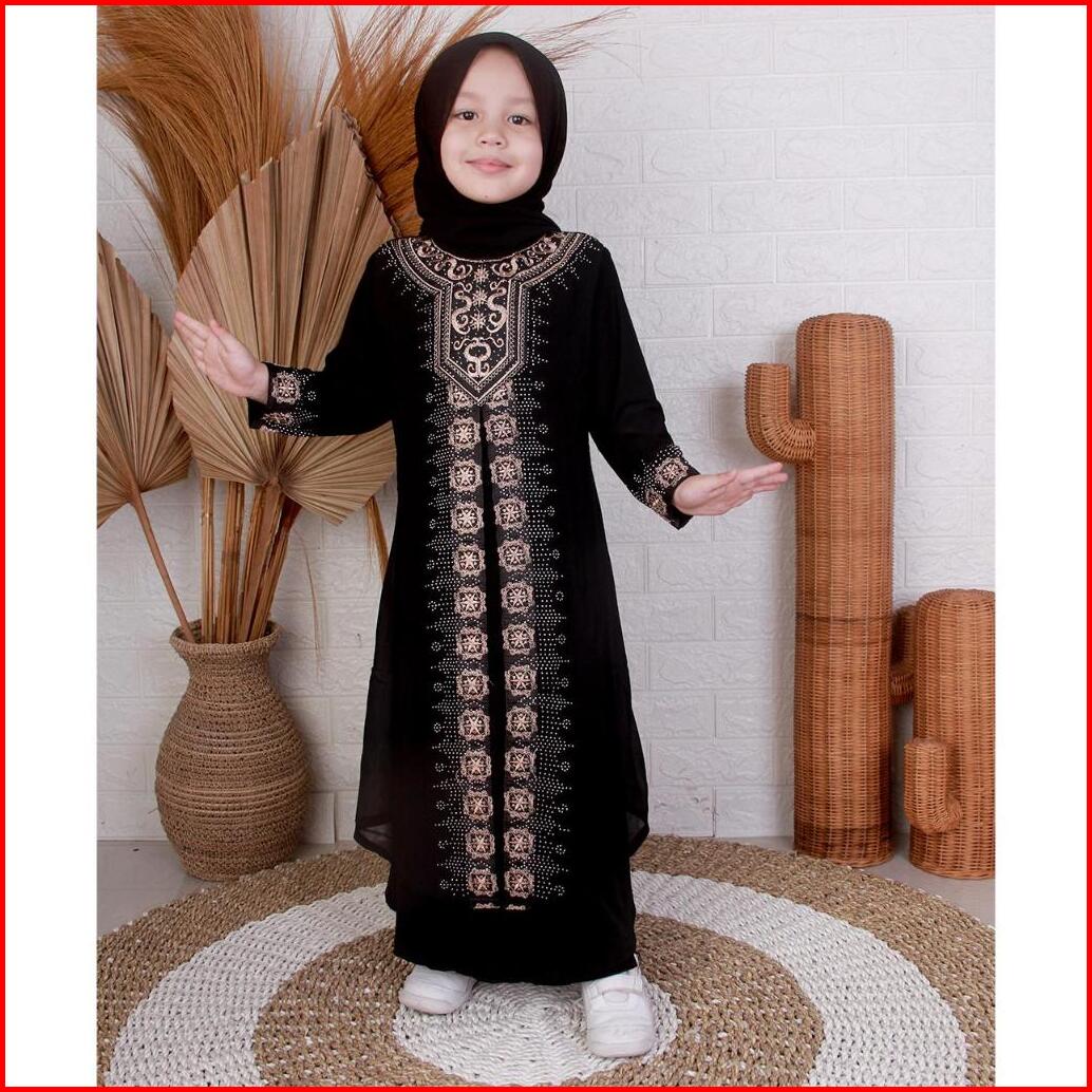Dungdungkids Gamis Abaya Anak Jetblack Bordir Payet Free Jilbab Segitiga 3 - 10 Tahun