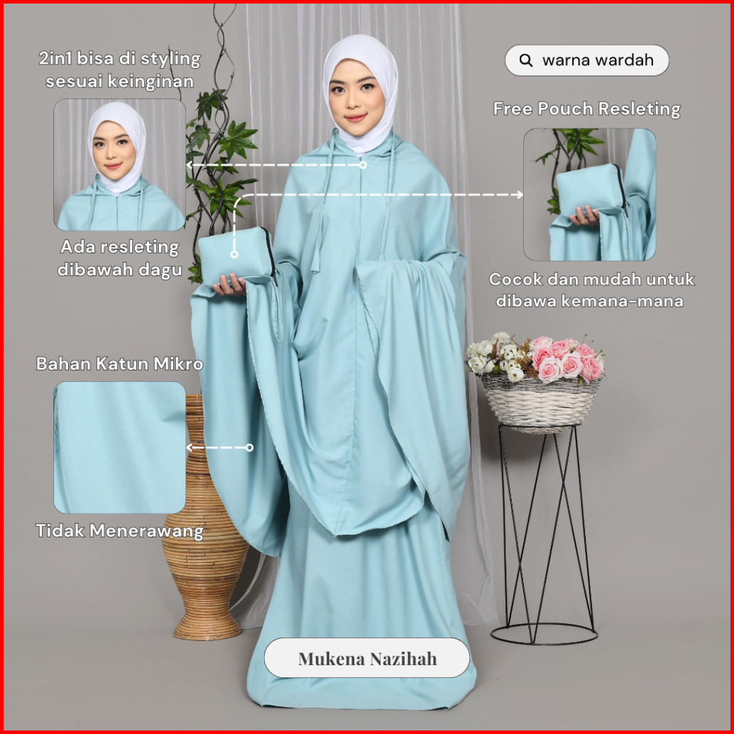 Mukena Nazihah Mukena Traveling Dewasa Resleting 2 In 1 Nadine
