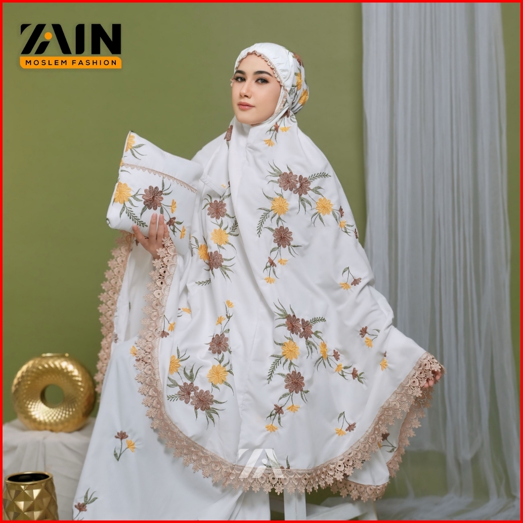Mukena Dewasa Katun Premium Bordir Bunga Zaskia Mewah Exlusive - Zain Moslem Fashion