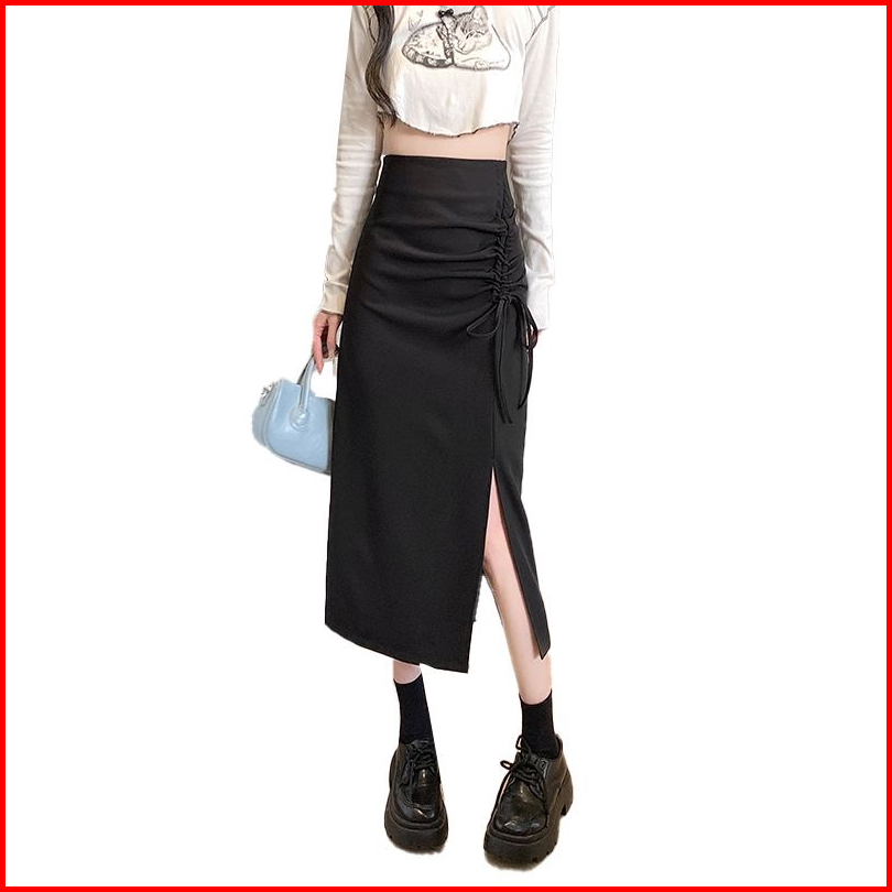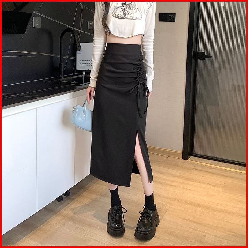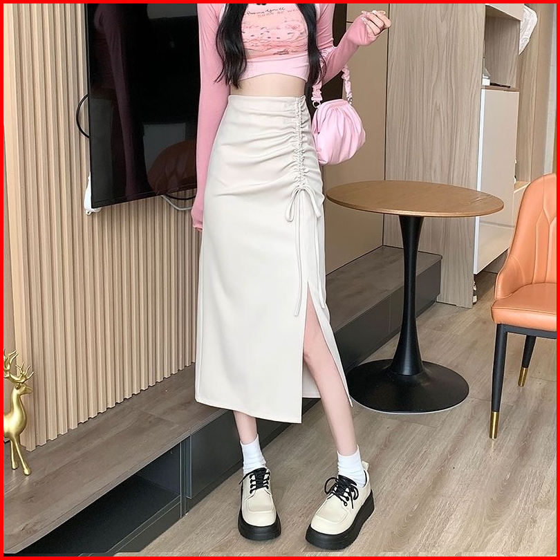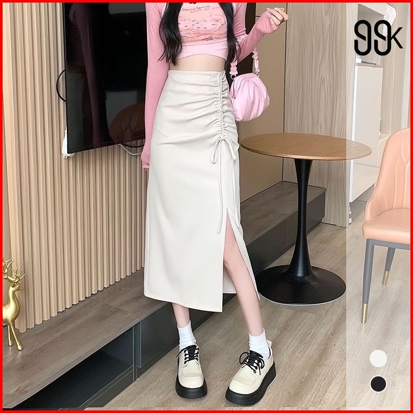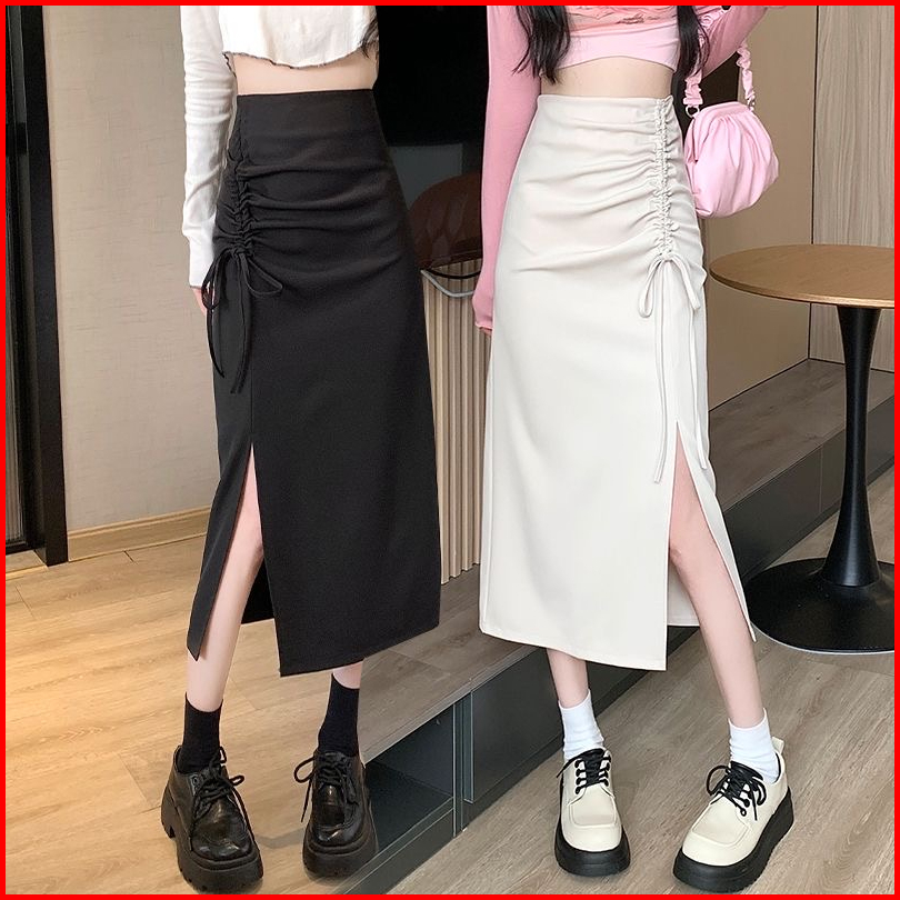 High Waist Drawstring Midi Skirt With Side Split 1716 S M L Xl