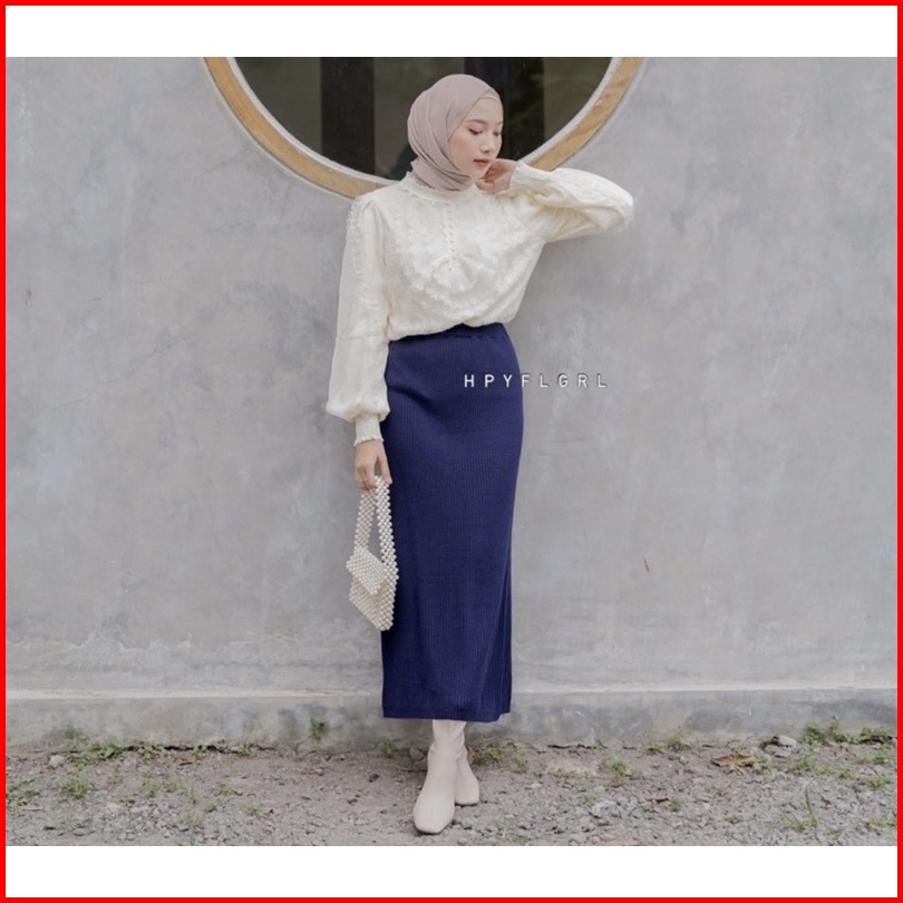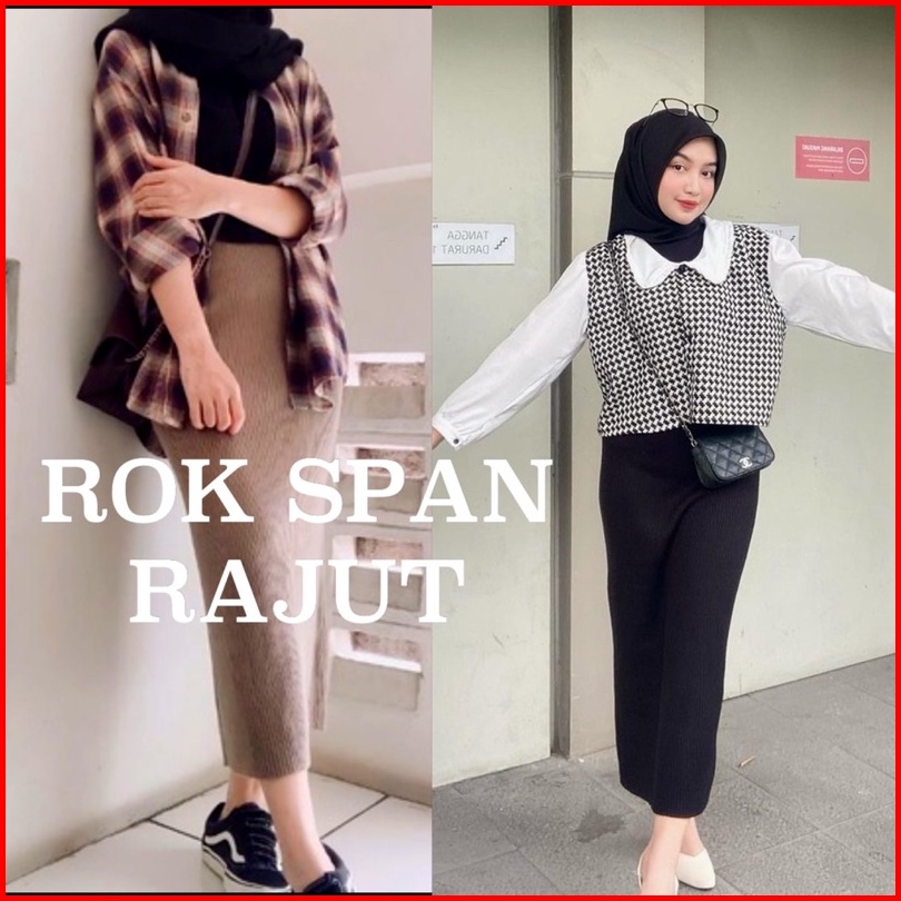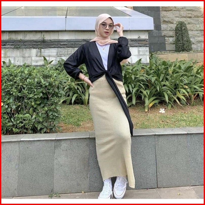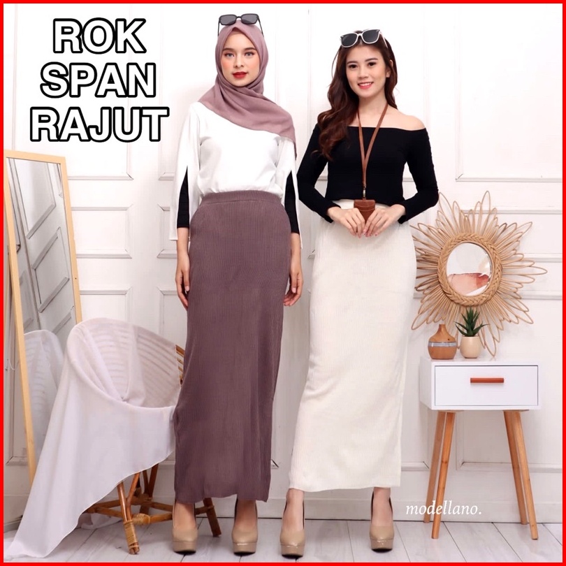 Rok Span Rajut - Knit Murah Polos Warna Hitam Bw Panjang Tebal Adem Melar Grosir Maxi Skirt Abg