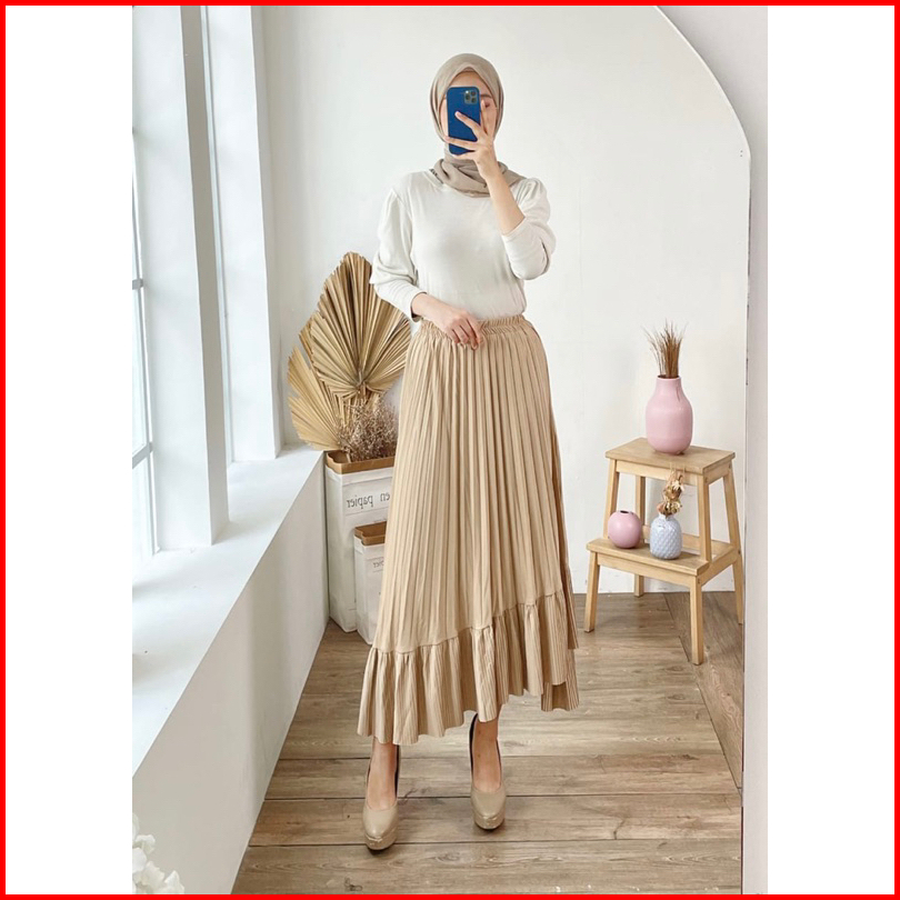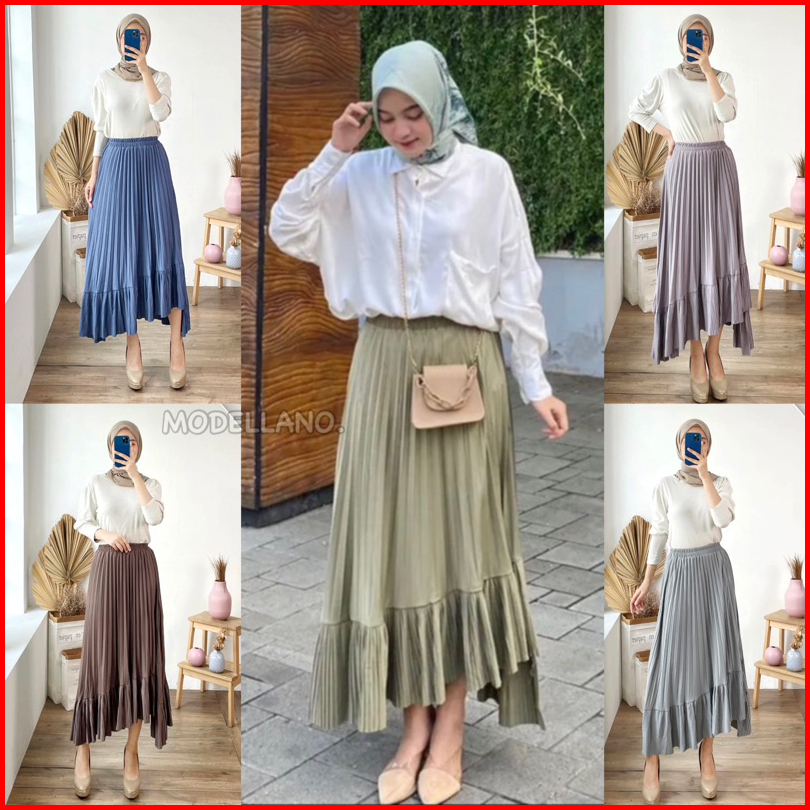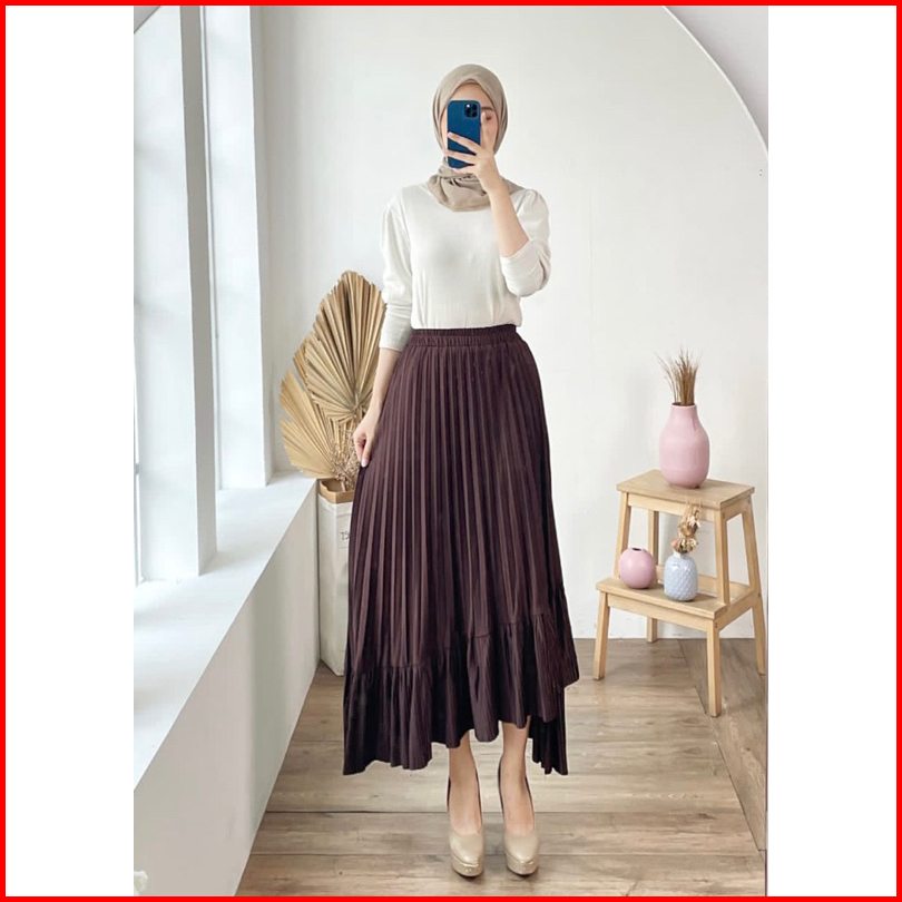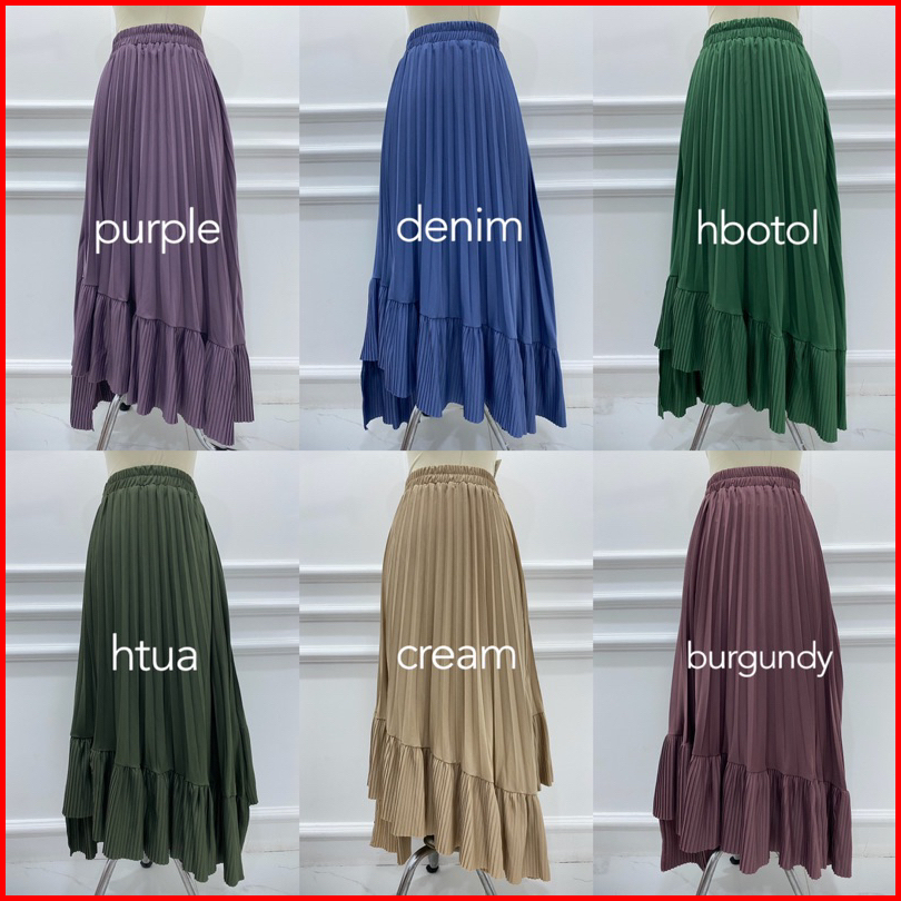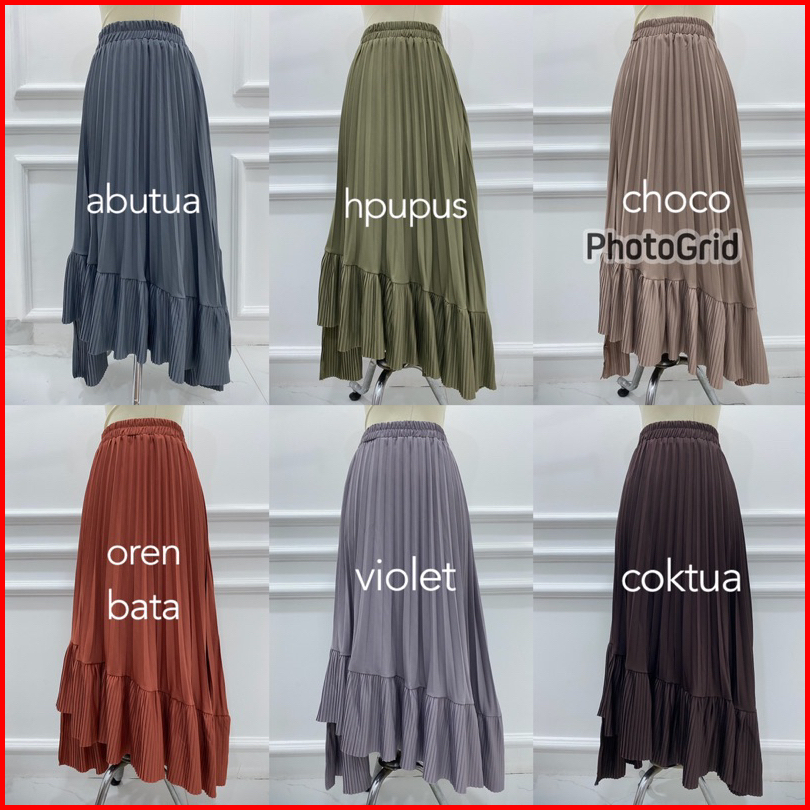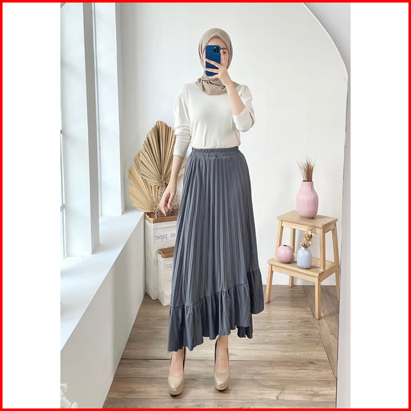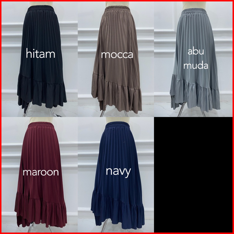 Rok Plisket 341 Ana Asimetris Ruffle Hyget Murah Lidi Prisket Polos Karet Melar Modellano Pgmta Grosir