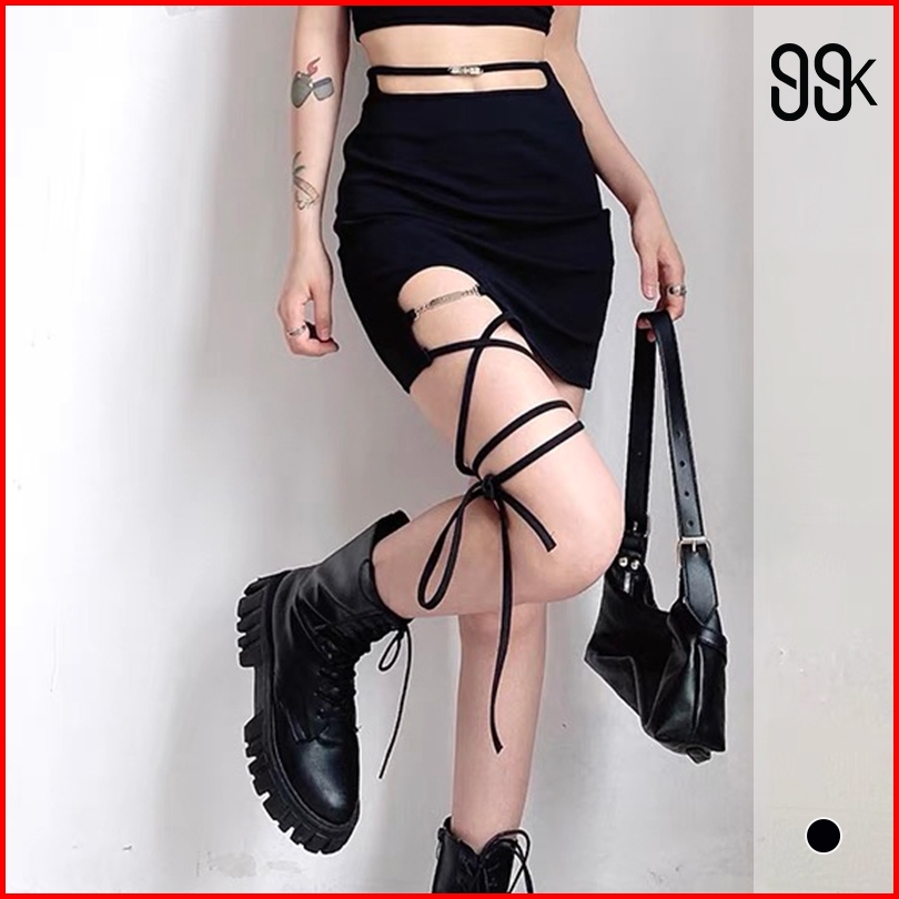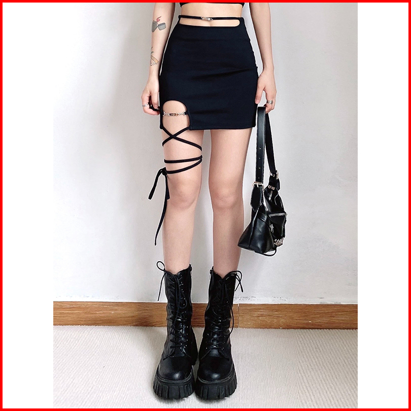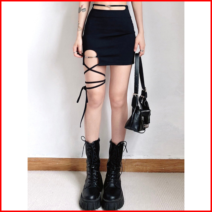 Premiumstrap Design High Waist Mini Skirt With Side Split 7046