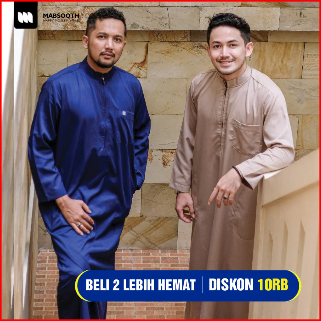 Jubah Pria Mabsooth Pakaian Gamis Pria Muslim Dewasa Lengan Panjang Resleting