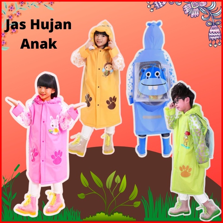 Jas Hujan Anak Perempuan Laki Laki Ransel Motif Karakter Lucu - Raincoat Anak Terusan Kantong Karakter