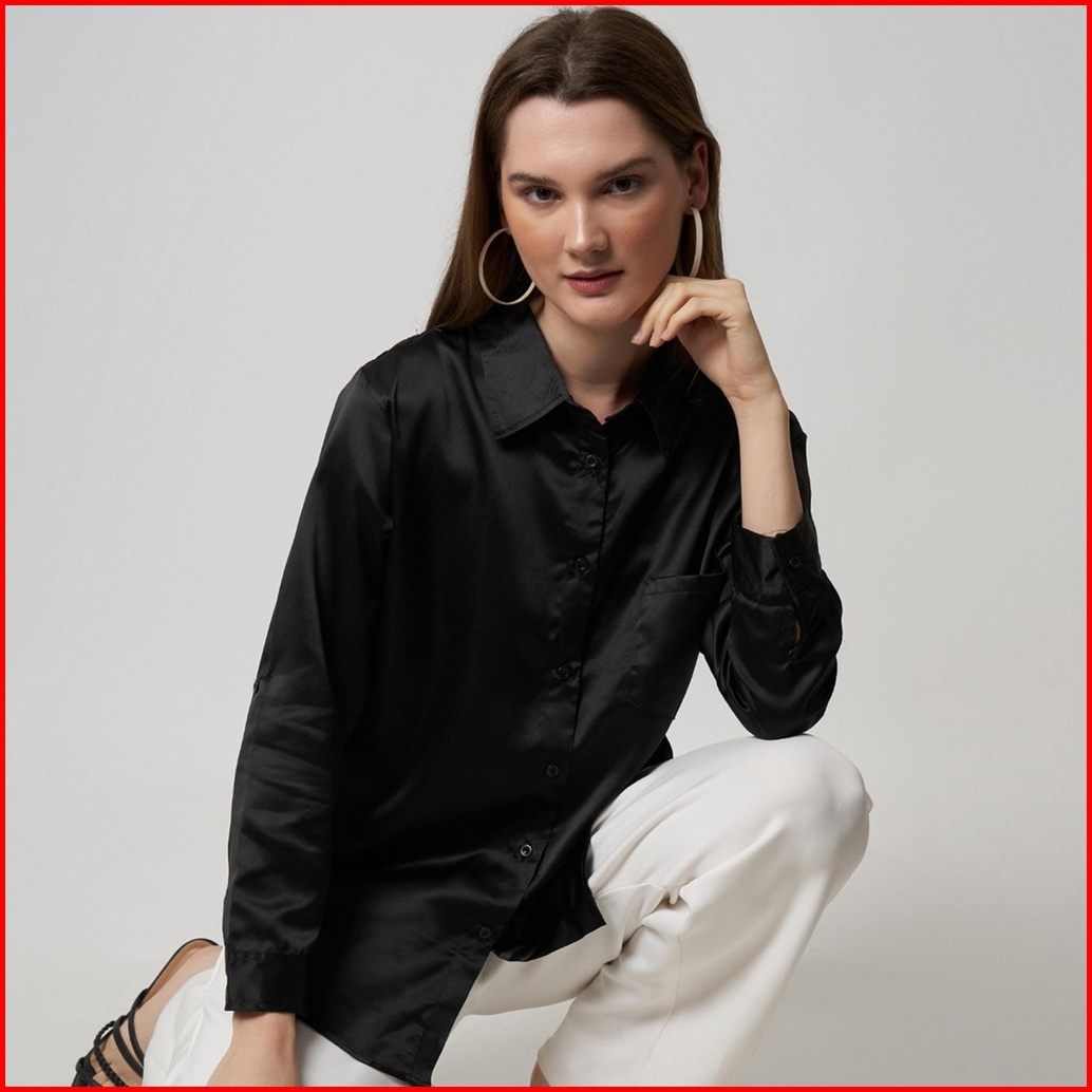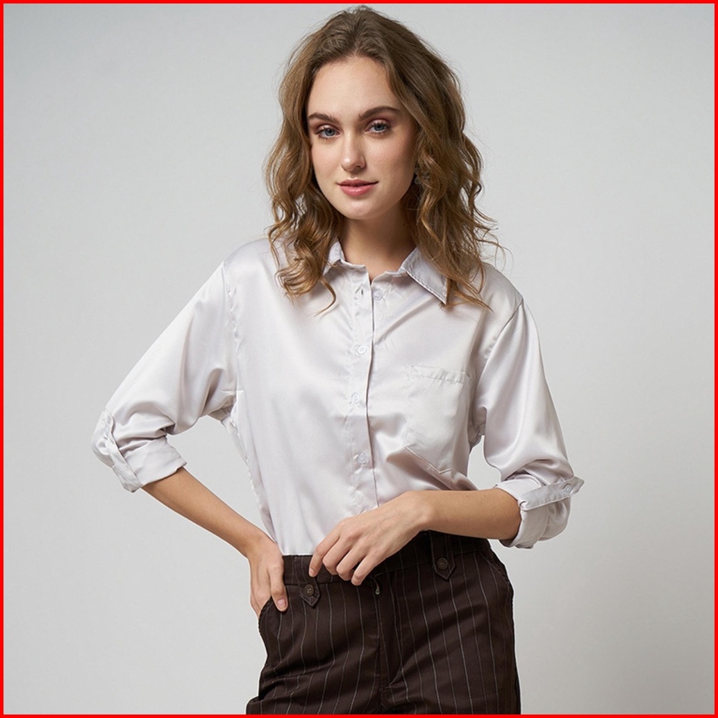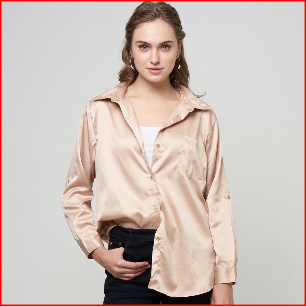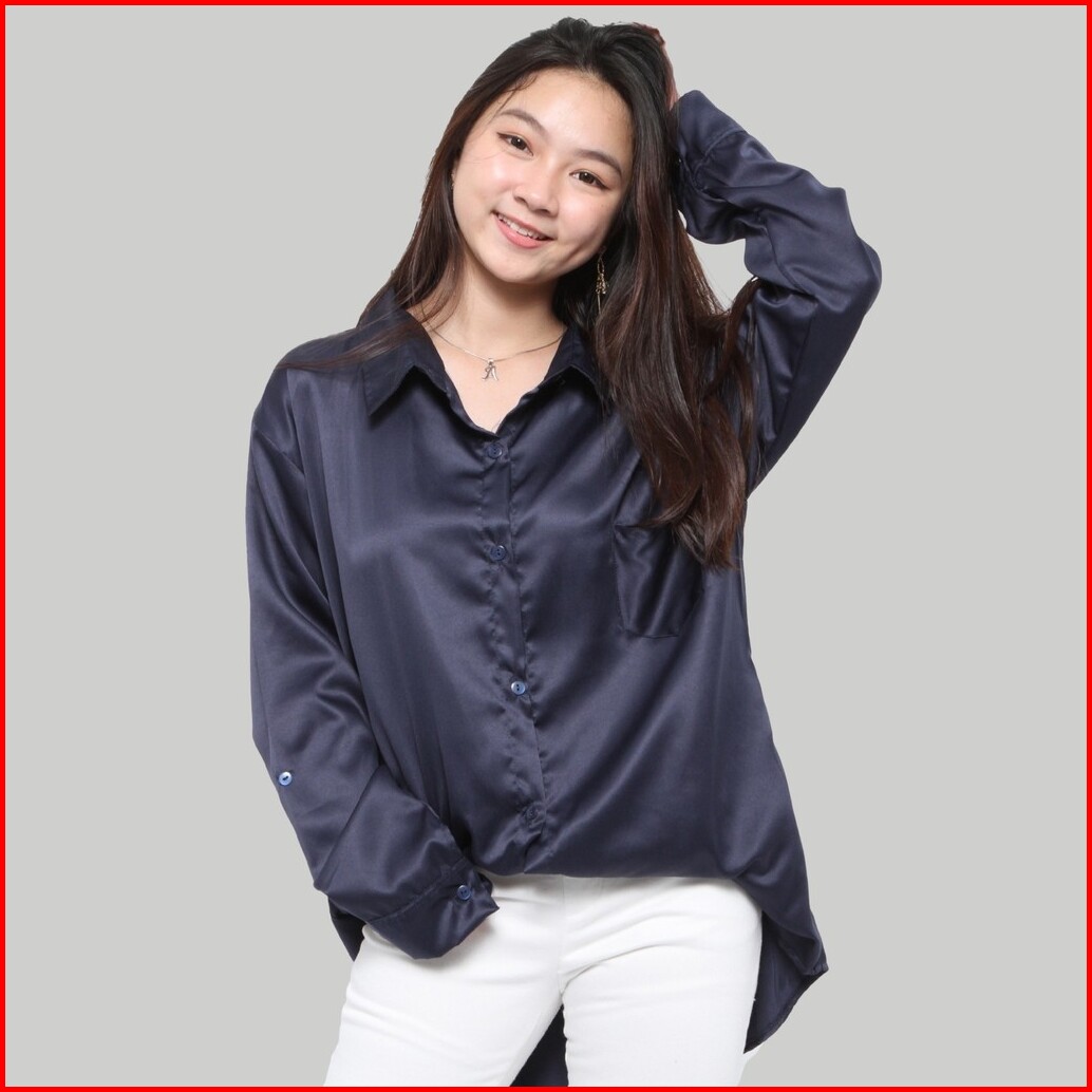 Monellina 00653 Kemeja Oversize Wanita Lengan Panjang Satin
