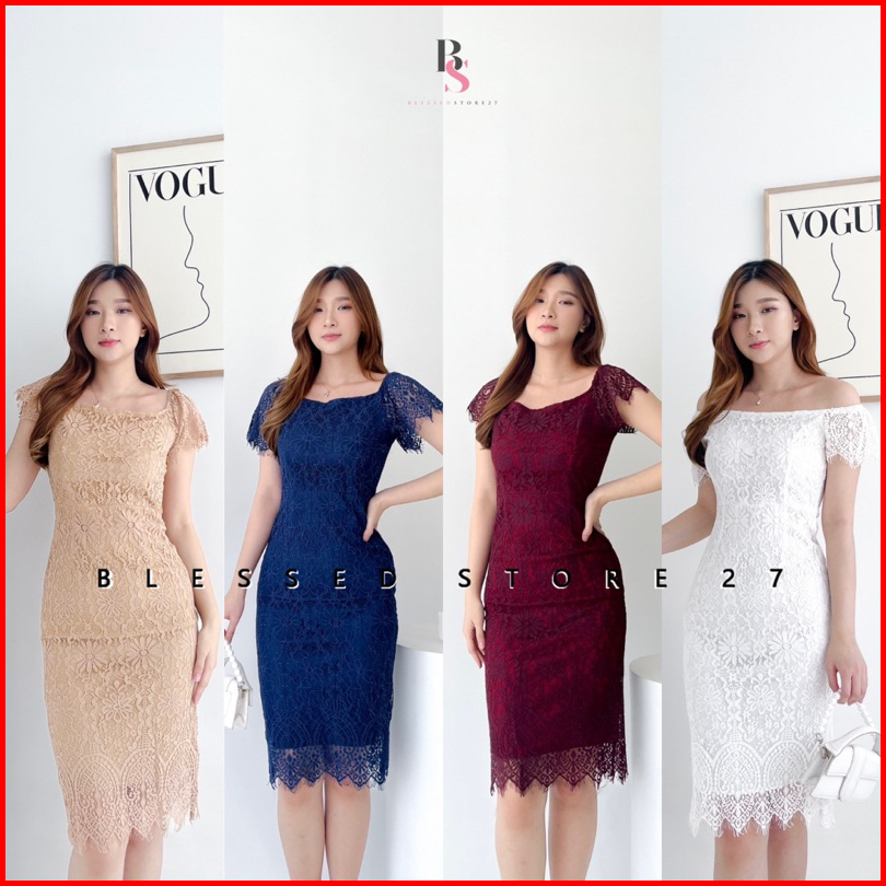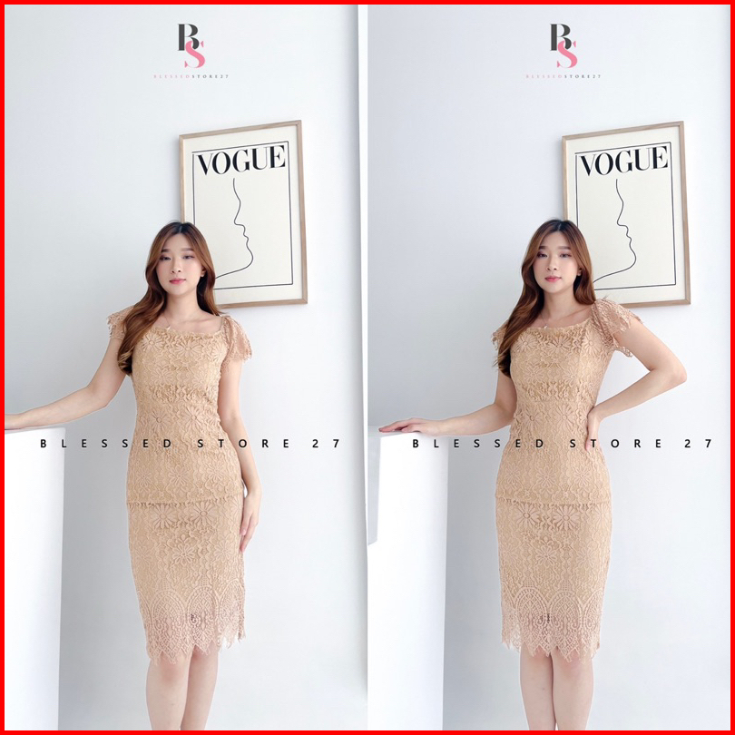 D0102 Quanto Korean Style Lace Vintage Midi Dress Pesta Kondangan Natal
