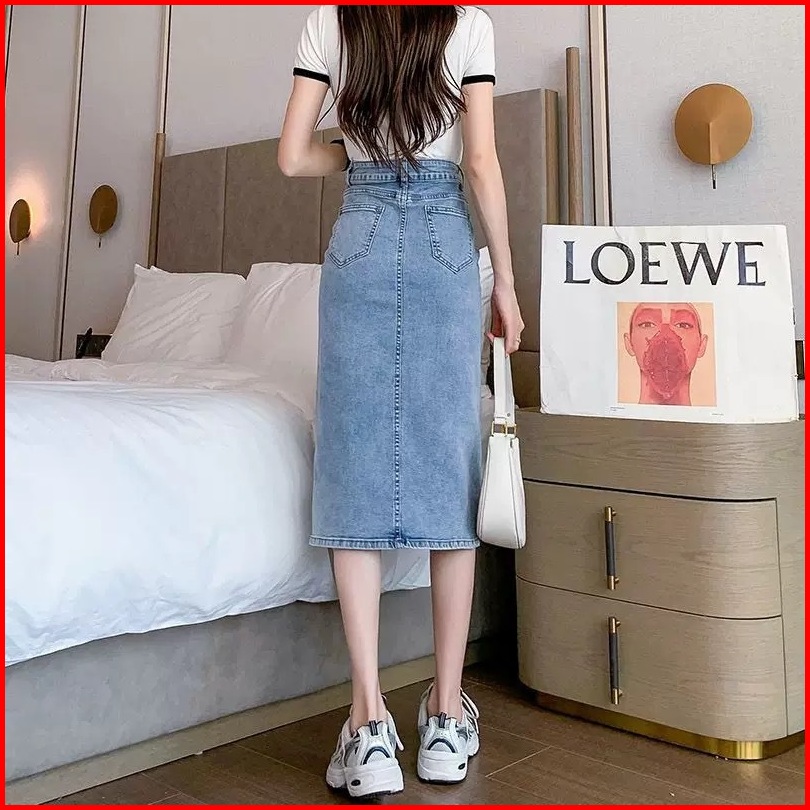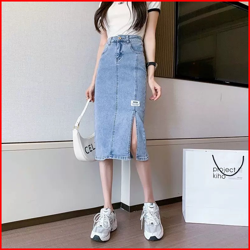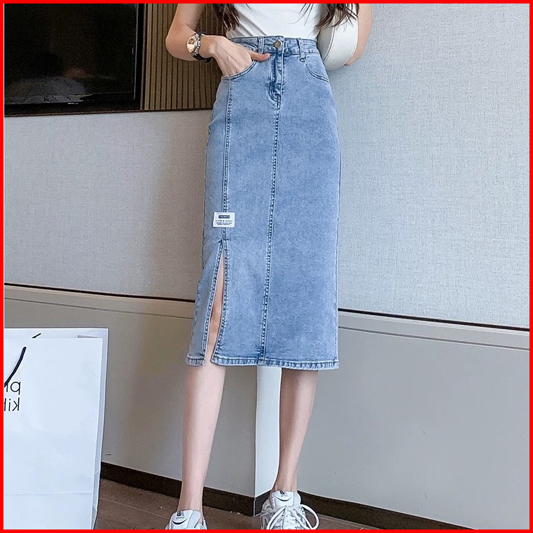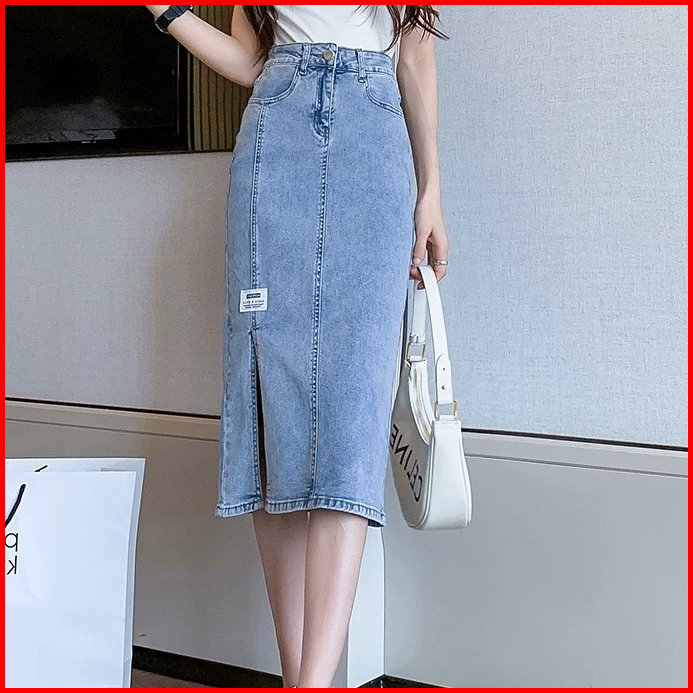 Premiumhigh Waist Side Split Knee Length Midi Jeans Skirt 7177 S M L Xl