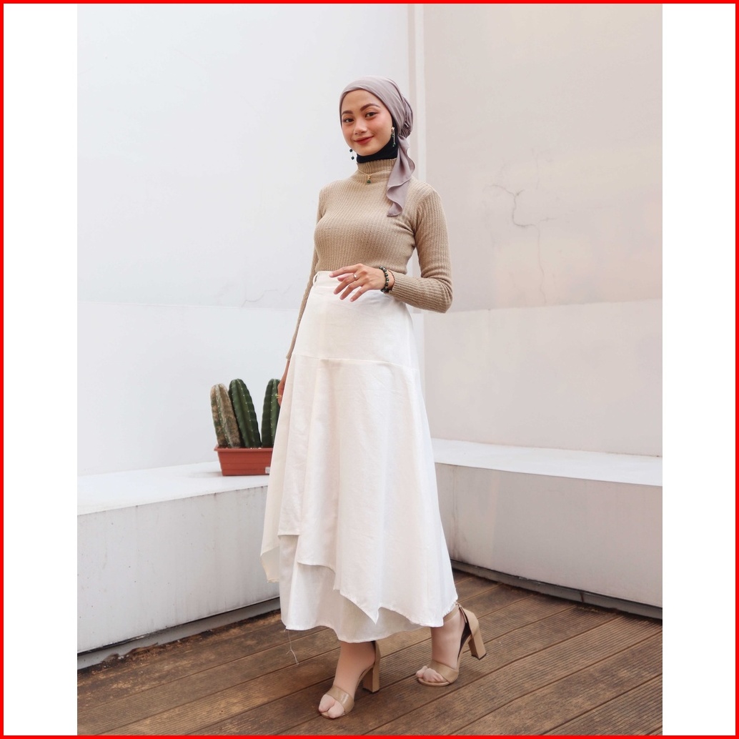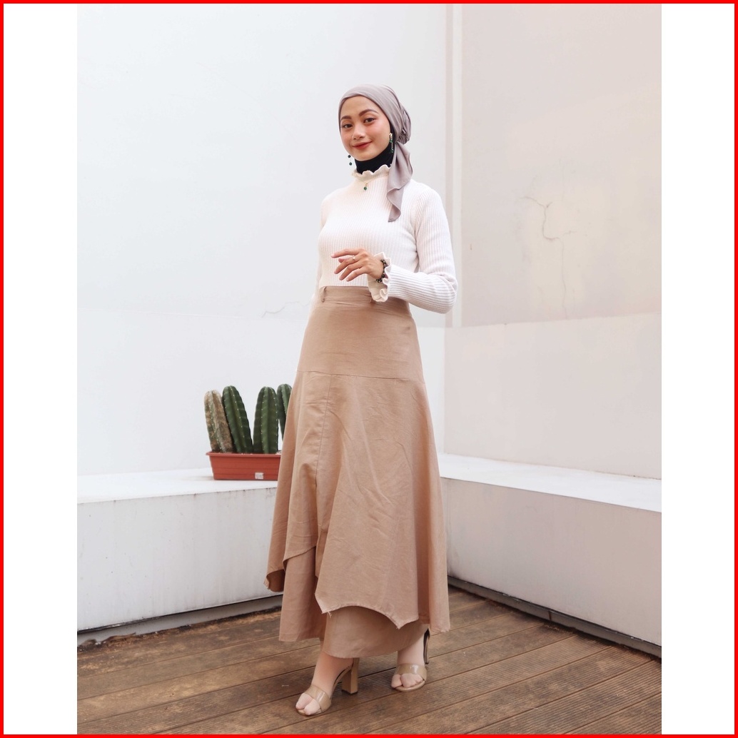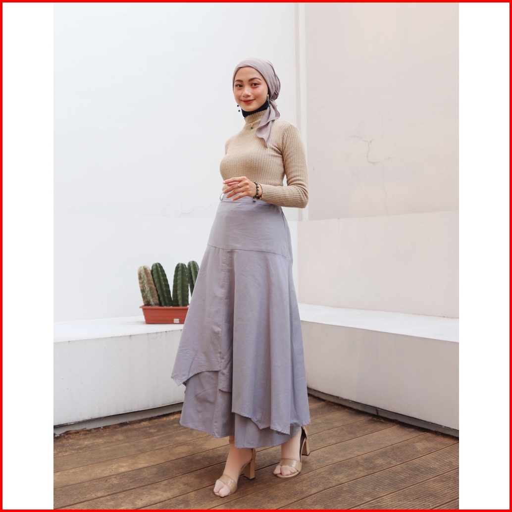 Rok Korea Layer Maxi Wanita Katun Linen 2 Lapis