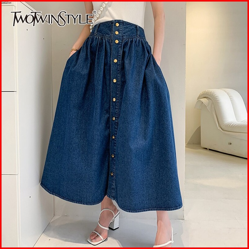 Rok Jeans Highwaist Hits Antik Maxi Skirt Twotwinstyle