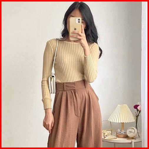Asoka Jiso Top Inner Rajut Oneck Kerah Bulat - Atasan Wanita - Knit Korea