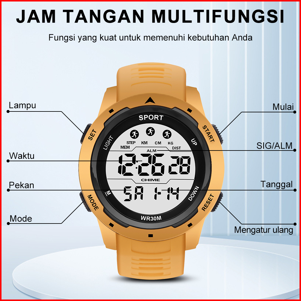 Sunlifex Jam Tangan Pria Digital Olahraga Mode Tali Silikon Alarm Jam Tangan Cowok