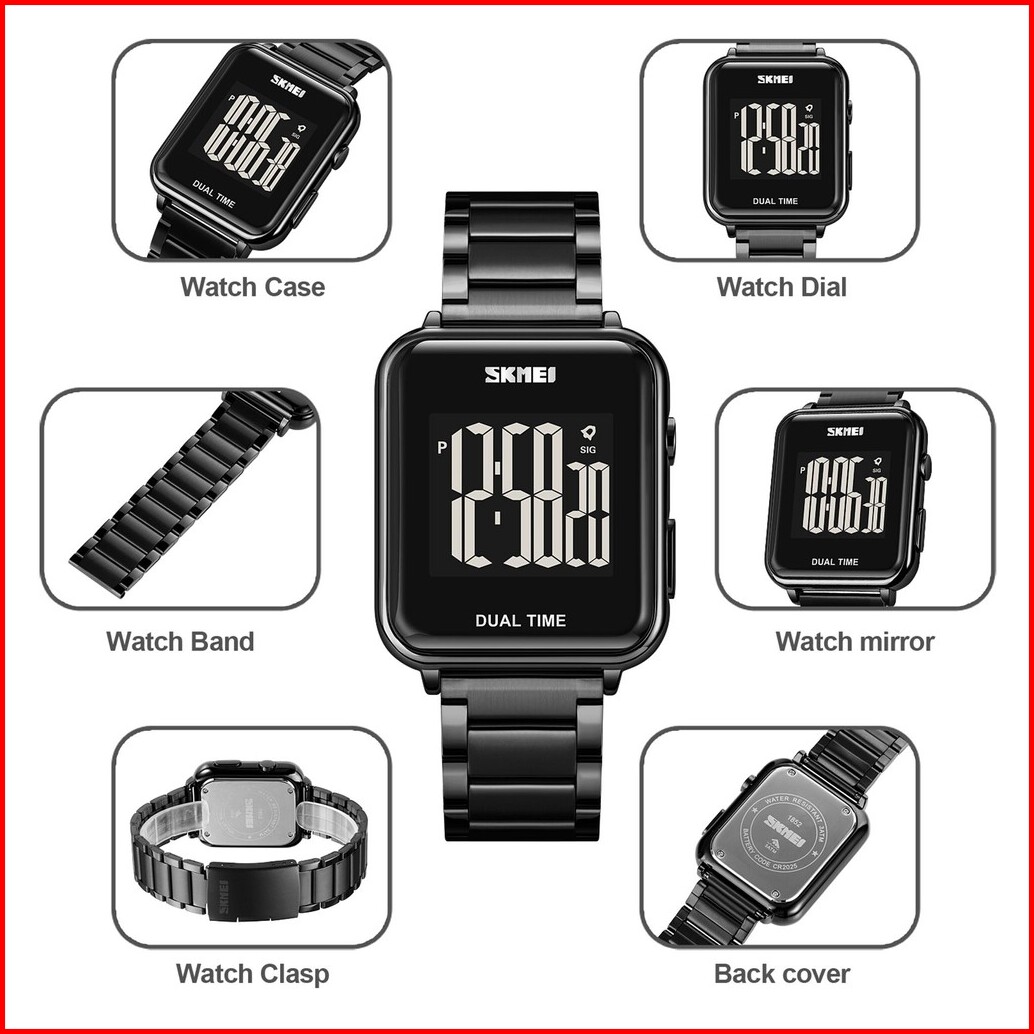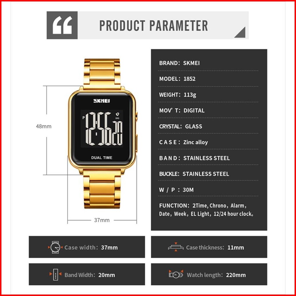 Jam Tangan Pria Digital Skmei 1852 Stainless Steel Water Resist 5 Atm Original Skmei