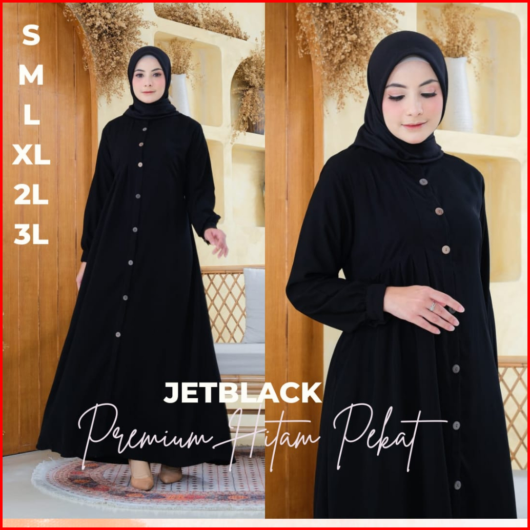 Dress Abaya Jetblack Gamis Hitam Pekat Exclusive Terbaru Size S M L Xl Xxl Xxxl