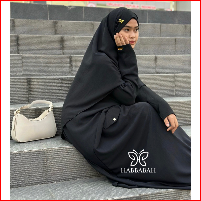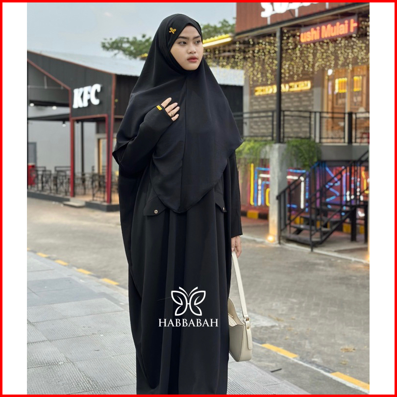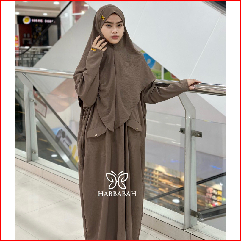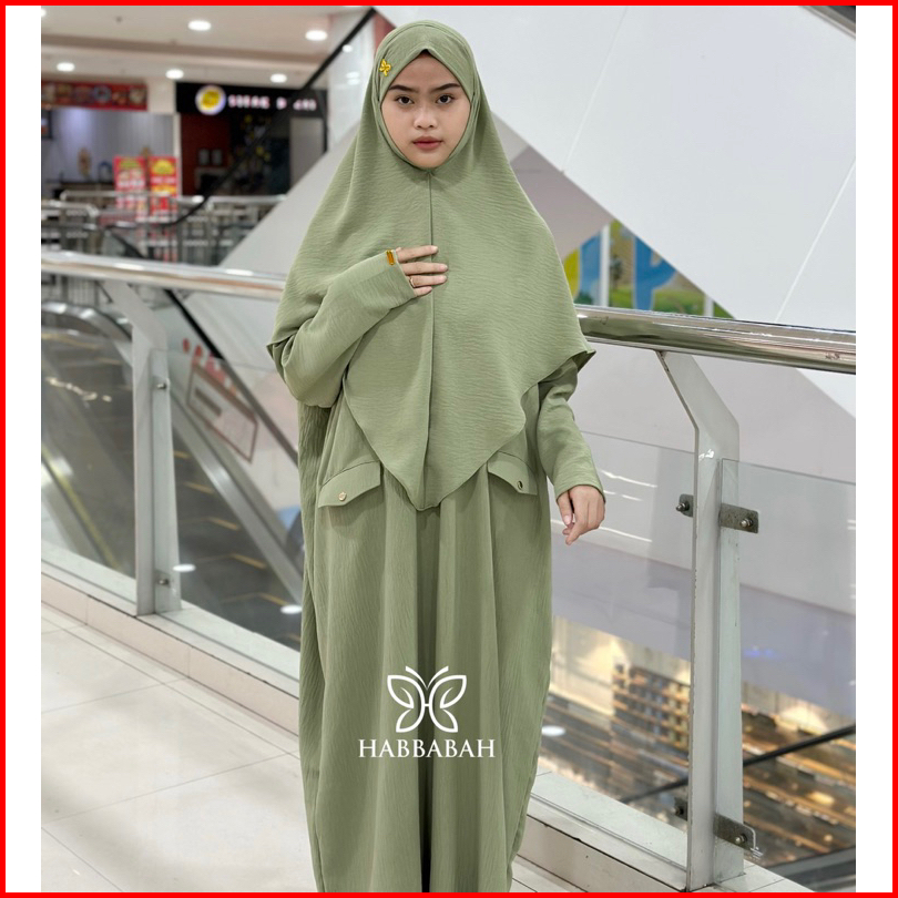 Abaya Kaftan Set Khimar Dress Gamis Wanita Ceinkle Airflow Abaya Zafira