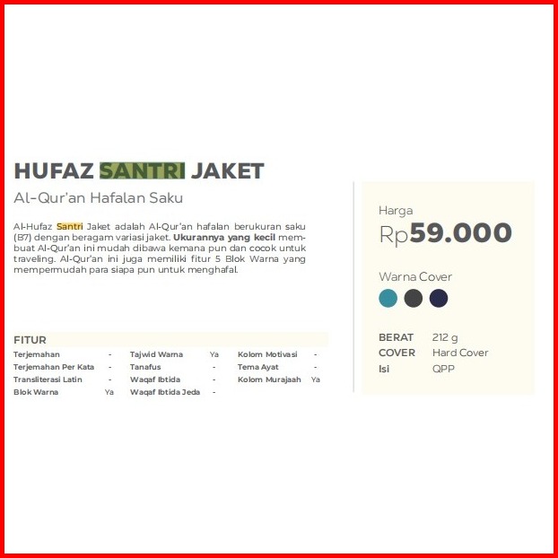 B7 - Al Quran Al Hufaz Santri Restleting Ukuran Saku - Cordoba