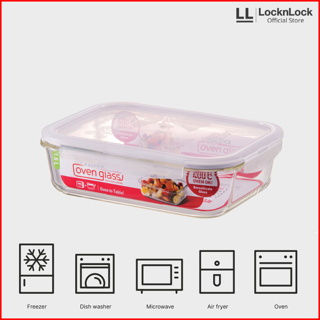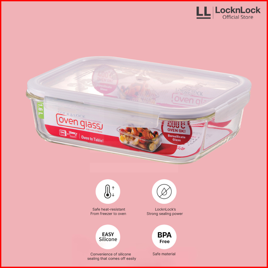 Locknlock Oven Glass Wadah Makan Rectangular 1.6l - Llg454w