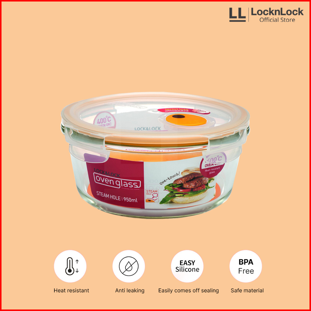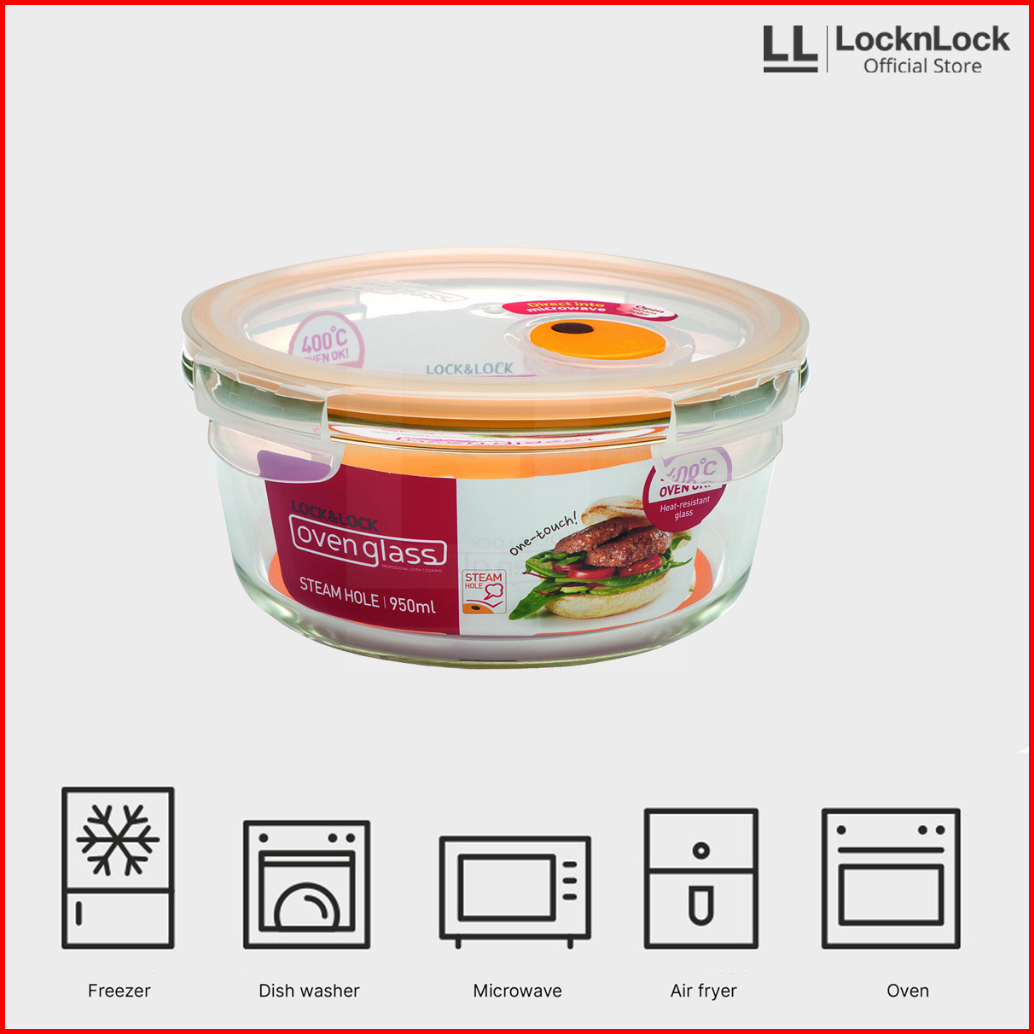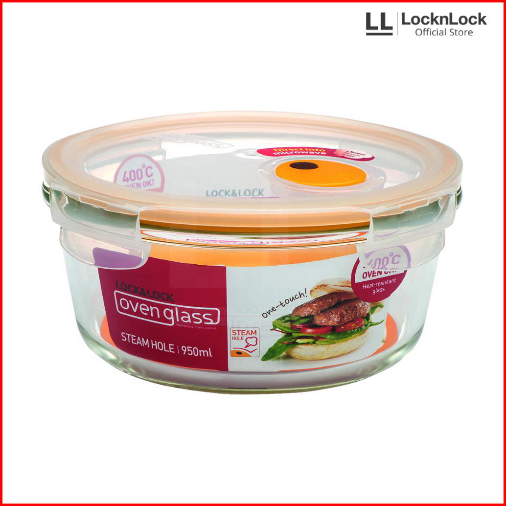Locknlock Oven Glass Wadah Makan Round With Steam Hole 950ml - Llg861t