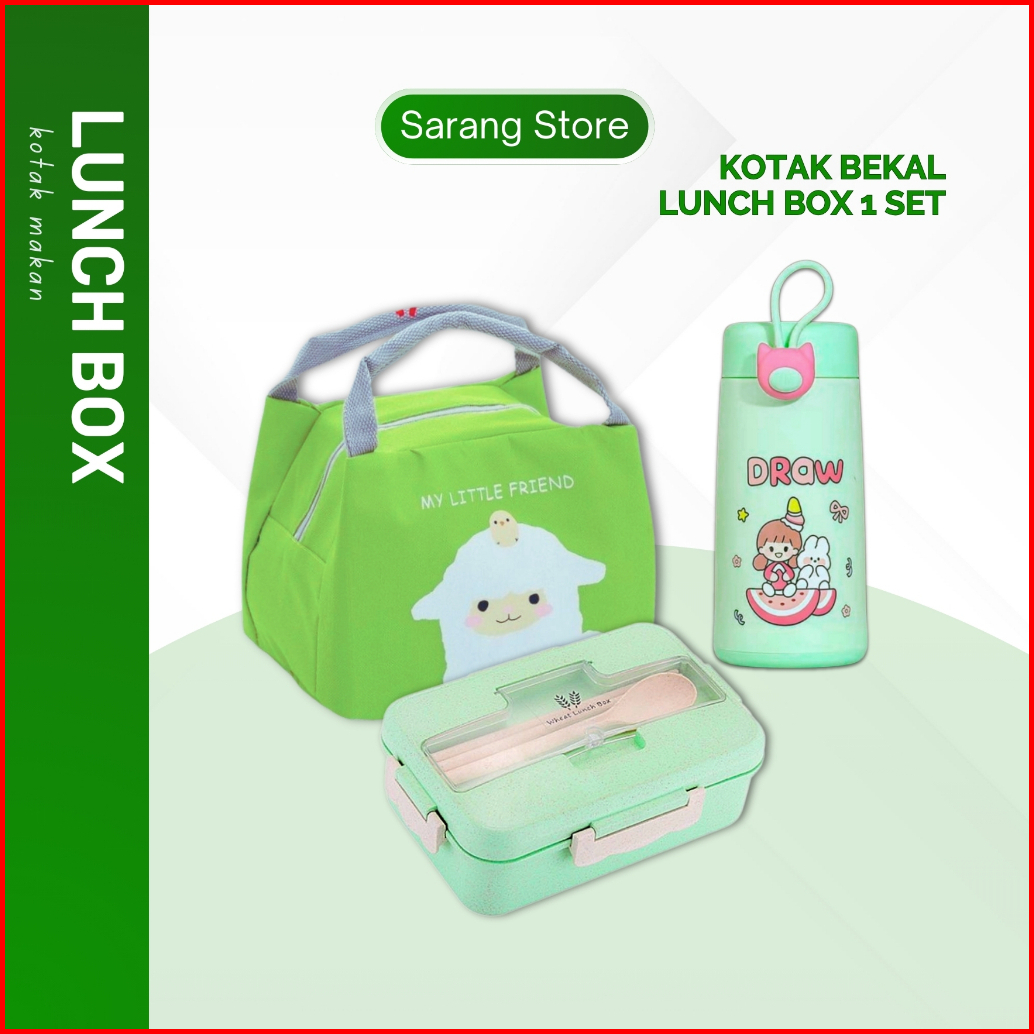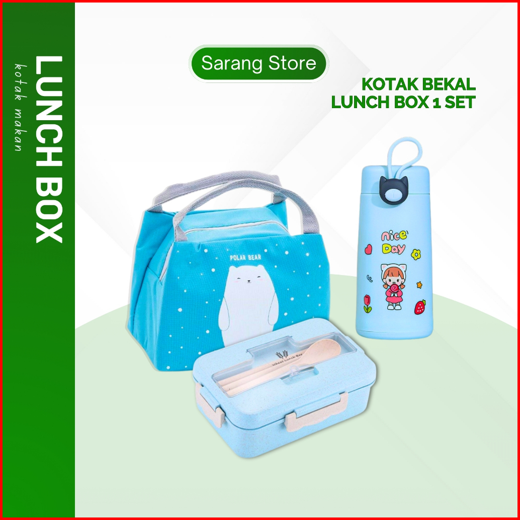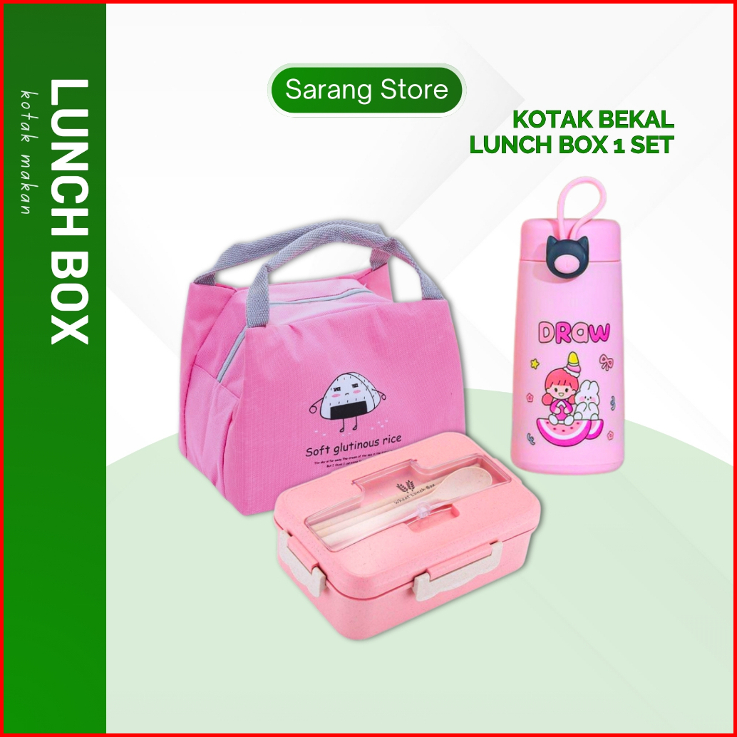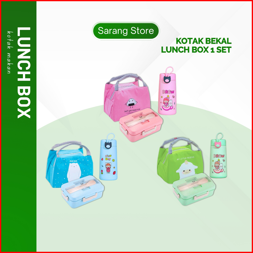 Kotak Bekal Tempat Makan Anak Sekolah Perempuan Laki Laki Lunch Box 1 Set Botol Minum Tas Karakter