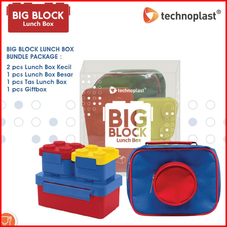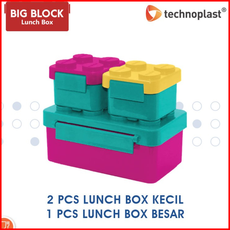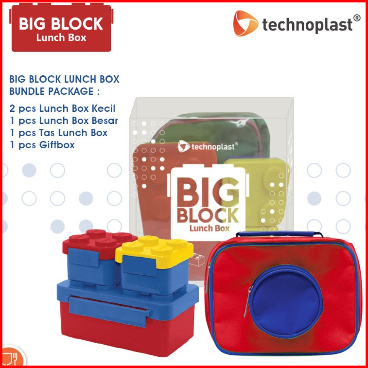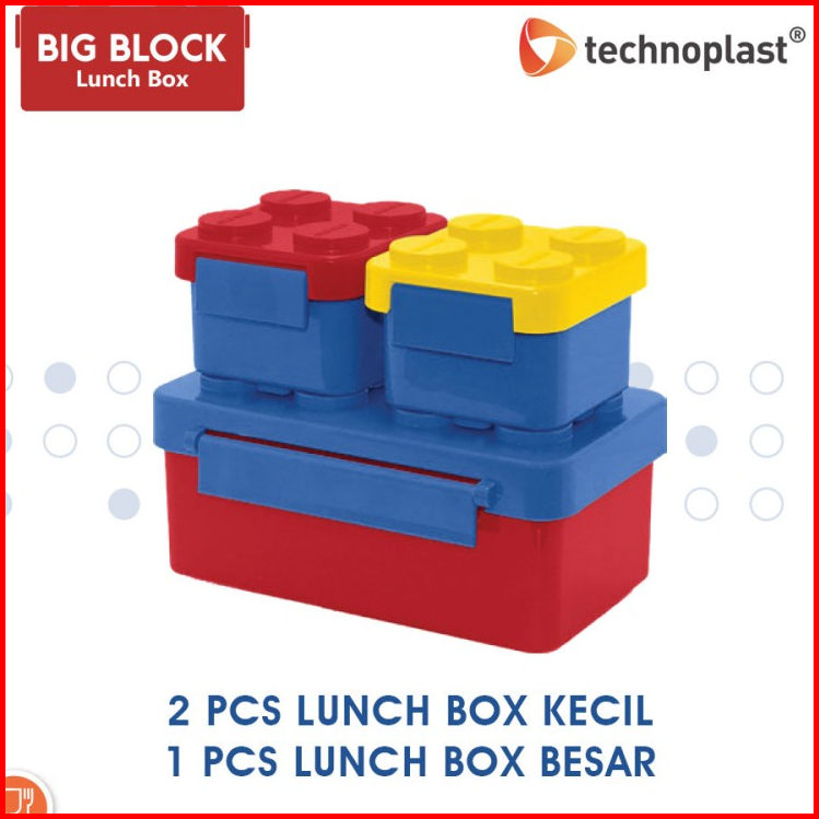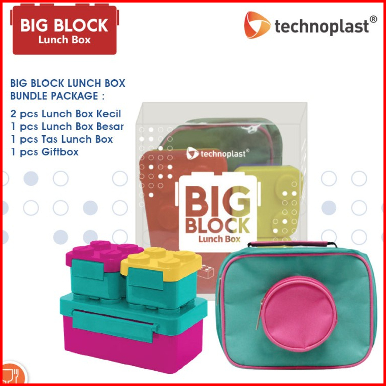 Technoplast Slk019 Big Block Lunch Box Set Kotak Makan Bentuk Lego Dengan Tas Bekal Sekolah Anak