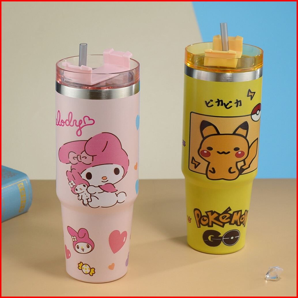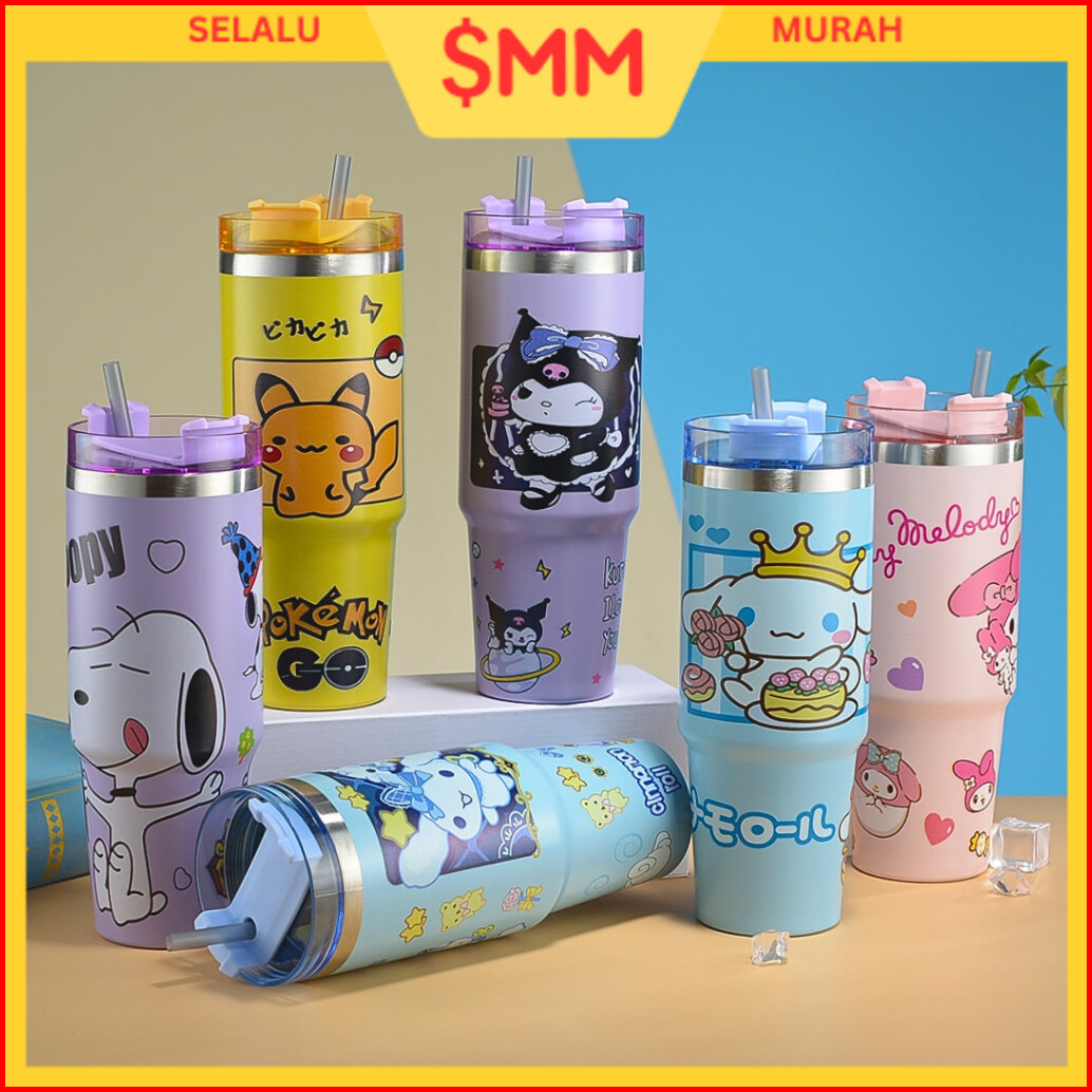 Termos Tumbler Stainless Motif Lucu 890ml Botol Minum Portable Dengan Sedotan Tahan Panas Dingin