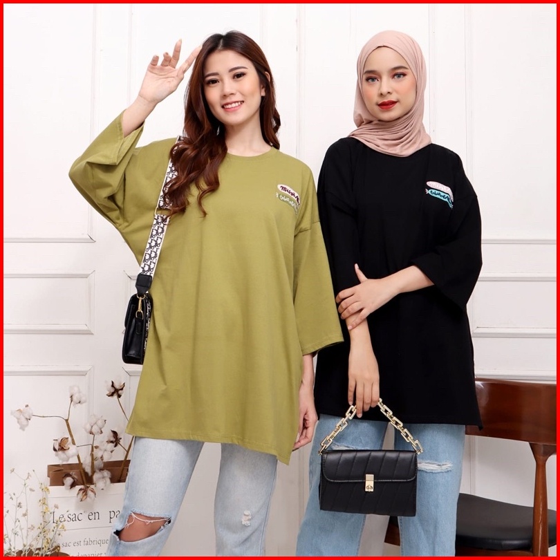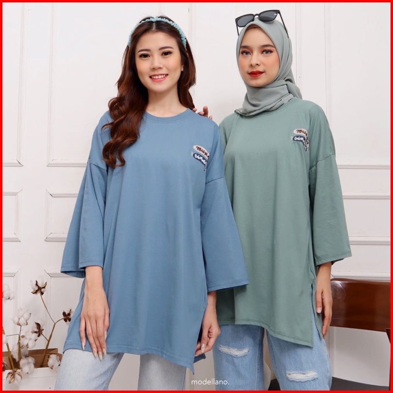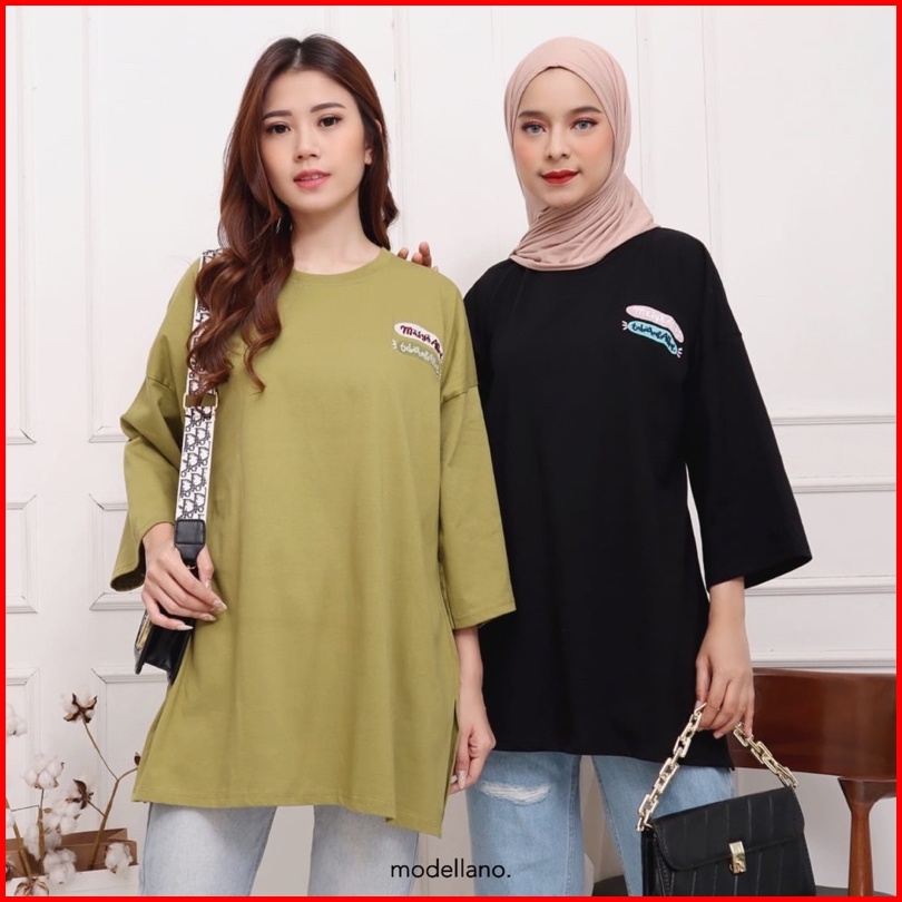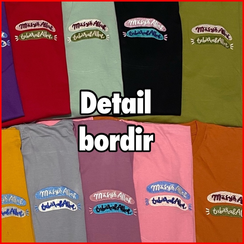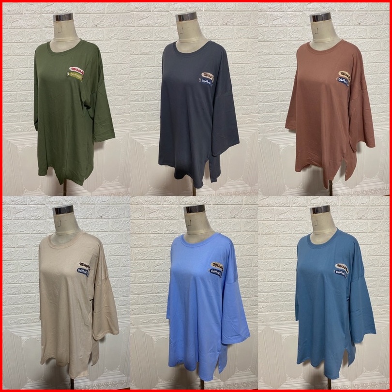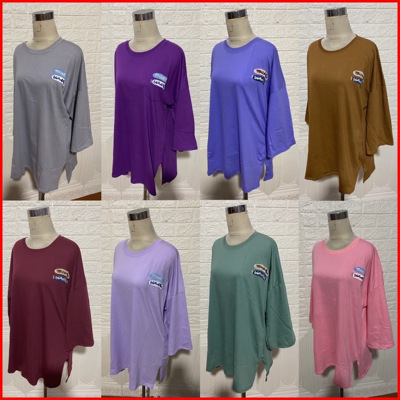 Kaos Oversized Bordir Masyaallah Slit Daily Top Jumbo Xxl Basic Polos Lengan 7 8 Cotton Combed 30s