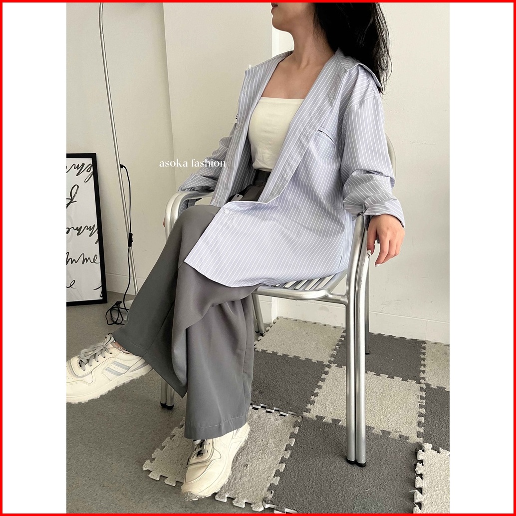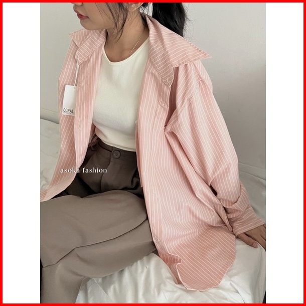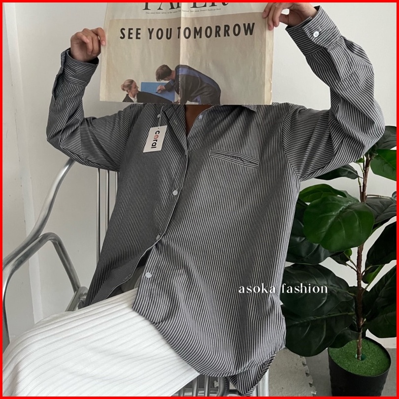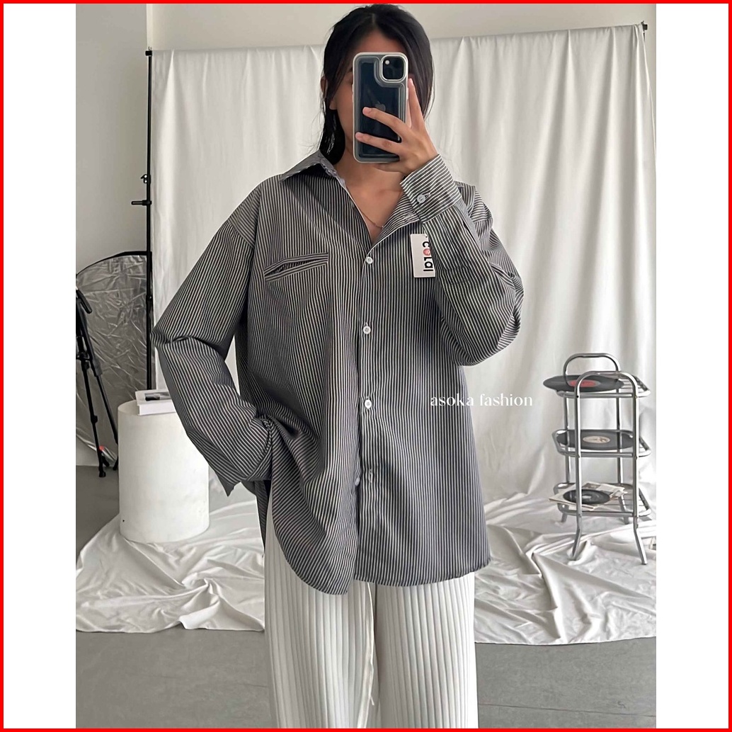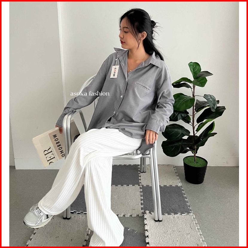 Asoka Nadine Shirt 2088 - Kemeja Oversized Wanita - Salur Striped Shirt