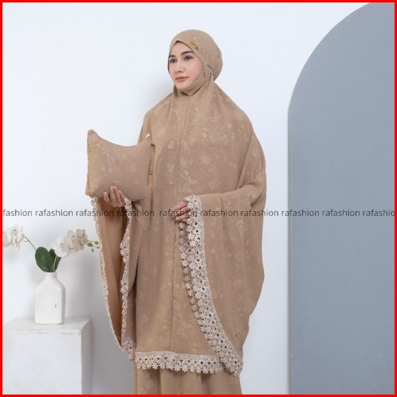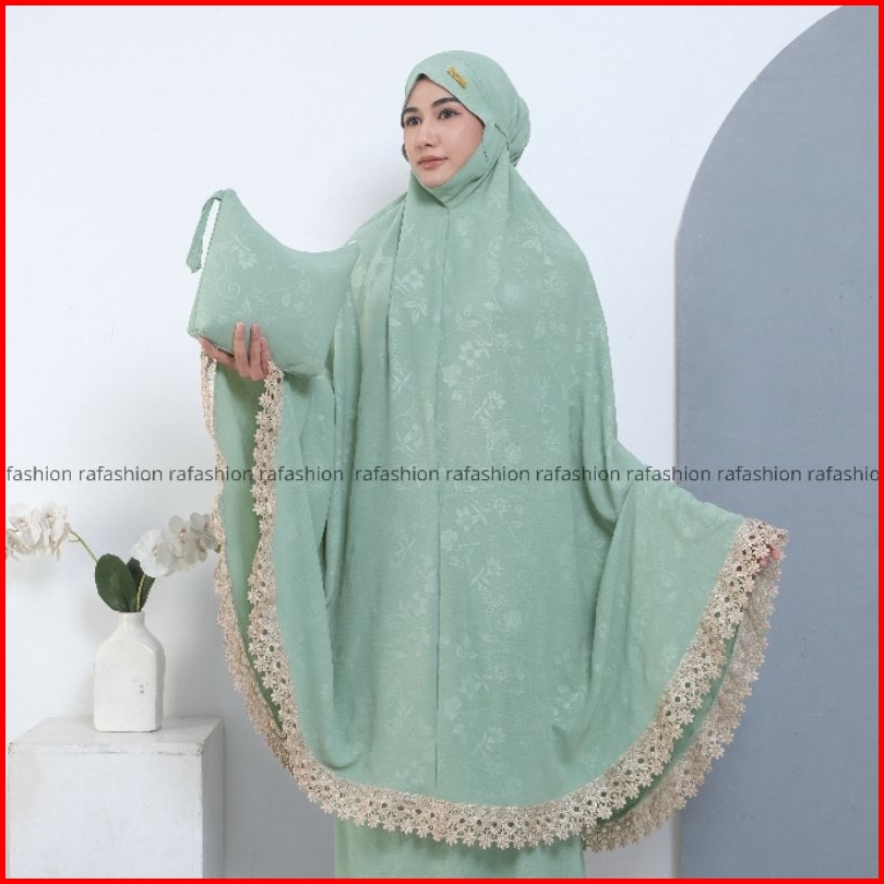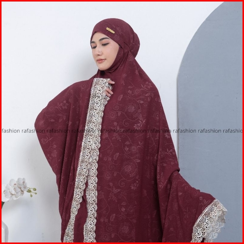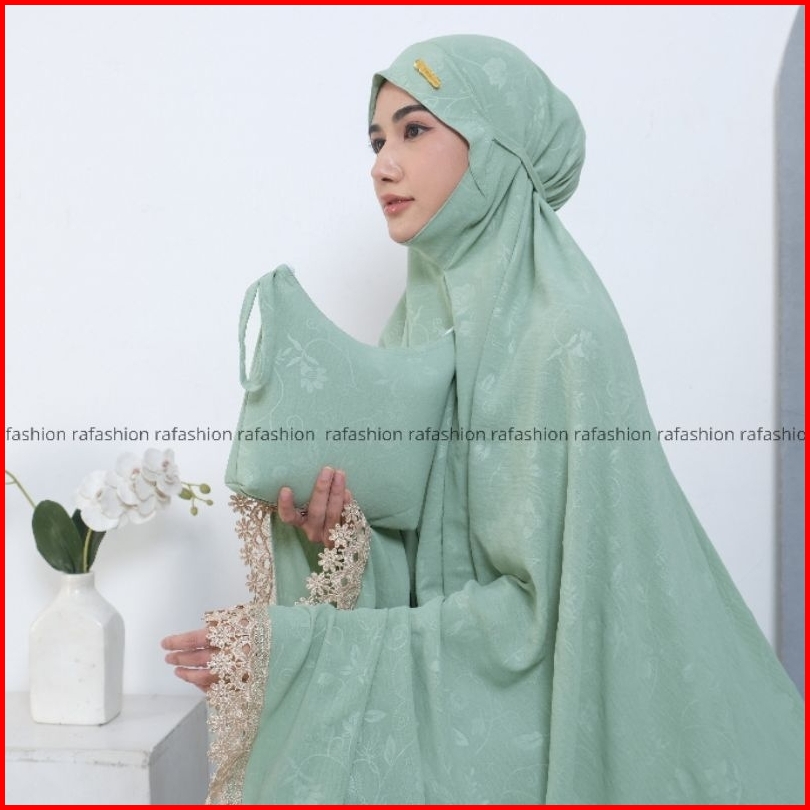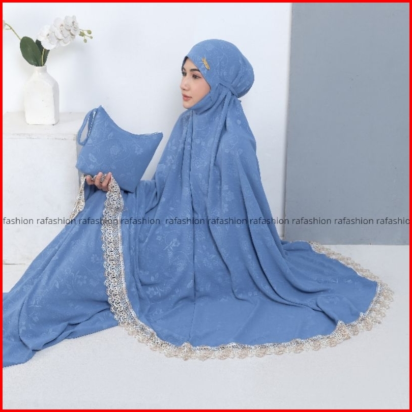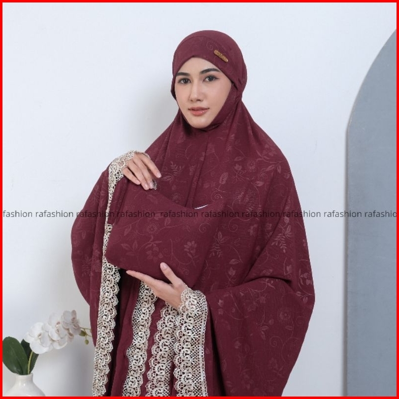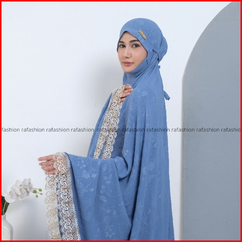 Ra Fashion - Mukena Shakilla Dewasa Embos Crinkle Airflow Syari Penutup Dagu Motif Bunga Mewah Renda