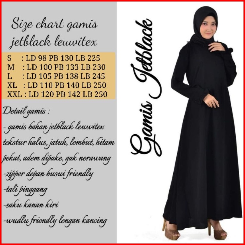 Exclusive Jetblack Gamis Jetblack Polos Gamis Syari Warna Hitam Pekat Gamis Jetblack Leuwitex