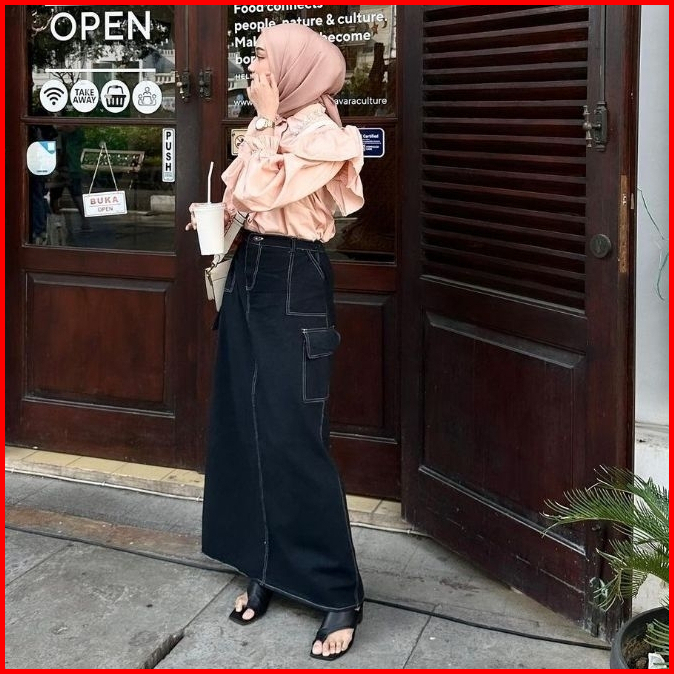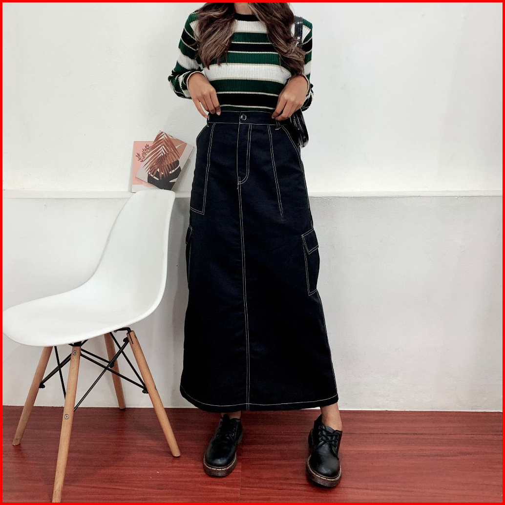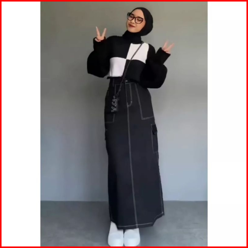 Rok Cargo List Skirt Jeans Highwaist Obses Skirt - Rok Cargo Jeans -rok Jeans Cargo Kasual -cargo Skirt Denim - Rok Span