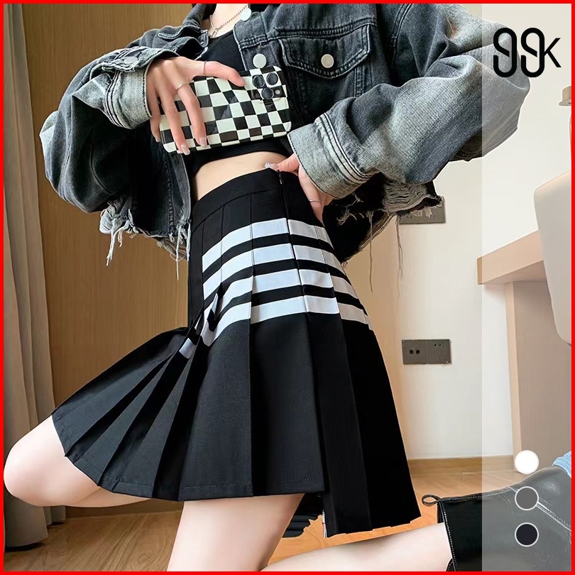 Korean Preppy Pleated Striped Mini Skirt 2105 S-xl