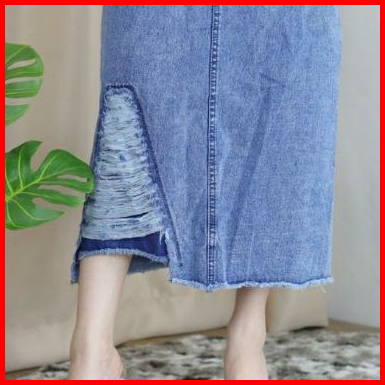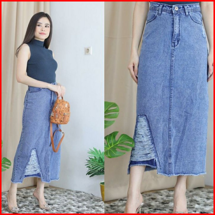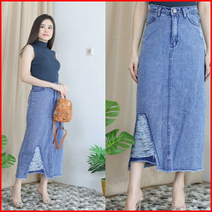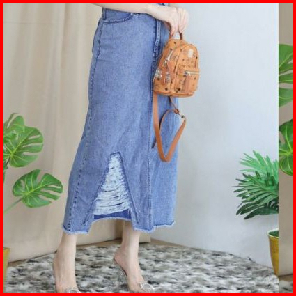 Soomi Rok Jeans Skirt Span Ripped Non-strecth Sobekan Tidak Tembus