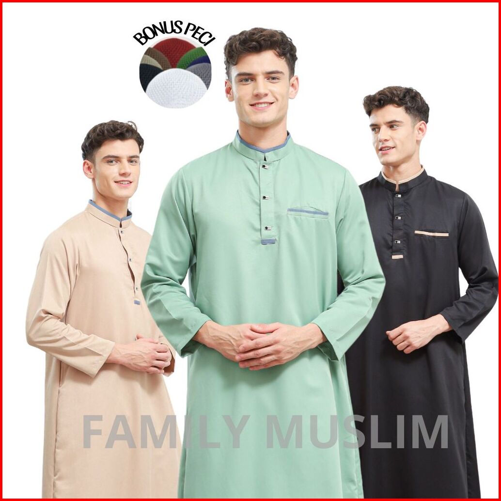 Family Muslim - Jubah Gamis Pria Dewasa Lengan Panjang Bahan Toyobo Cream