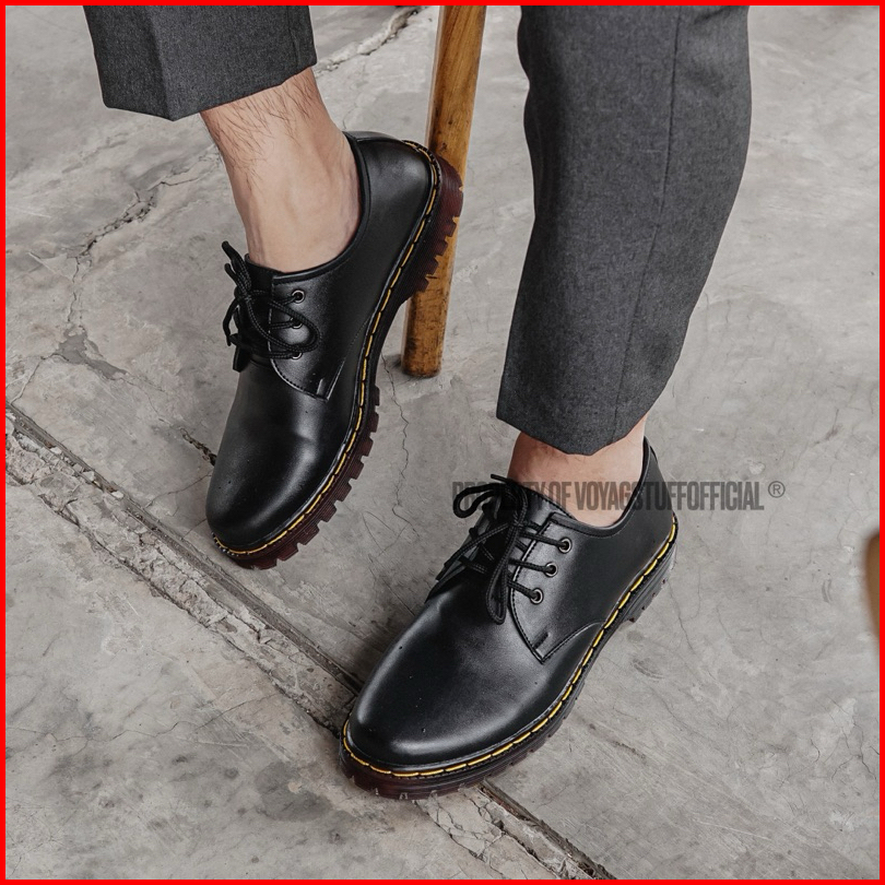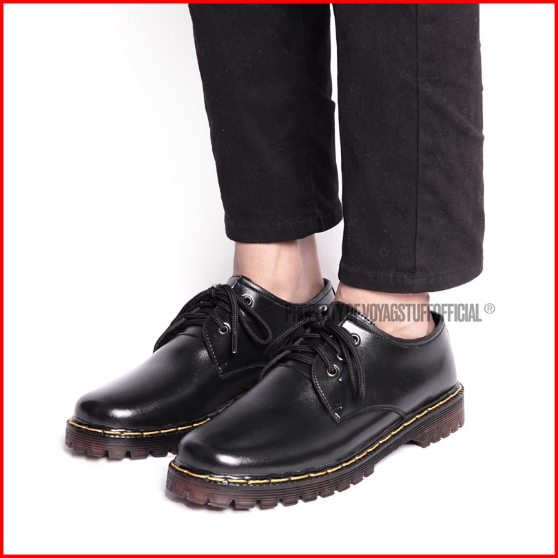 Voyagstuffofficial - Rise Sepatu Formal 3 Hole Boots Black Kulit Pria
