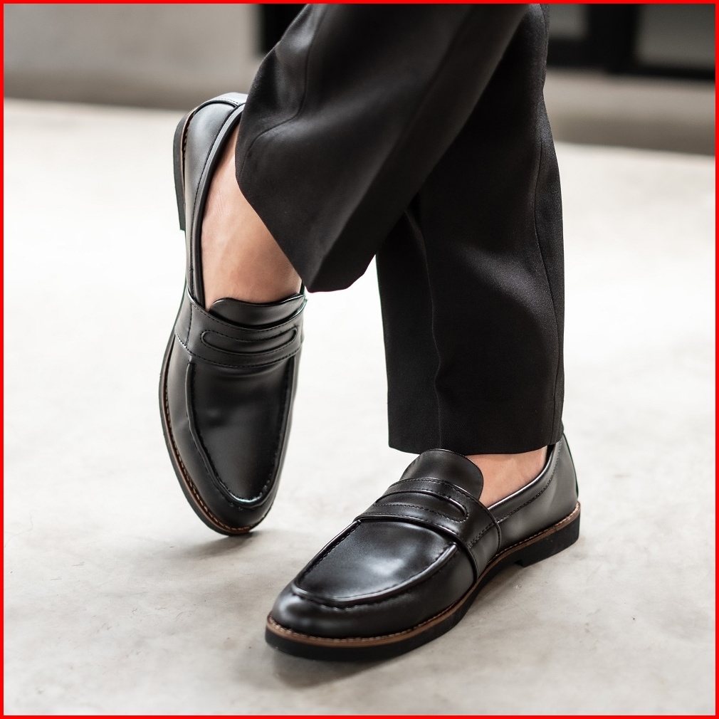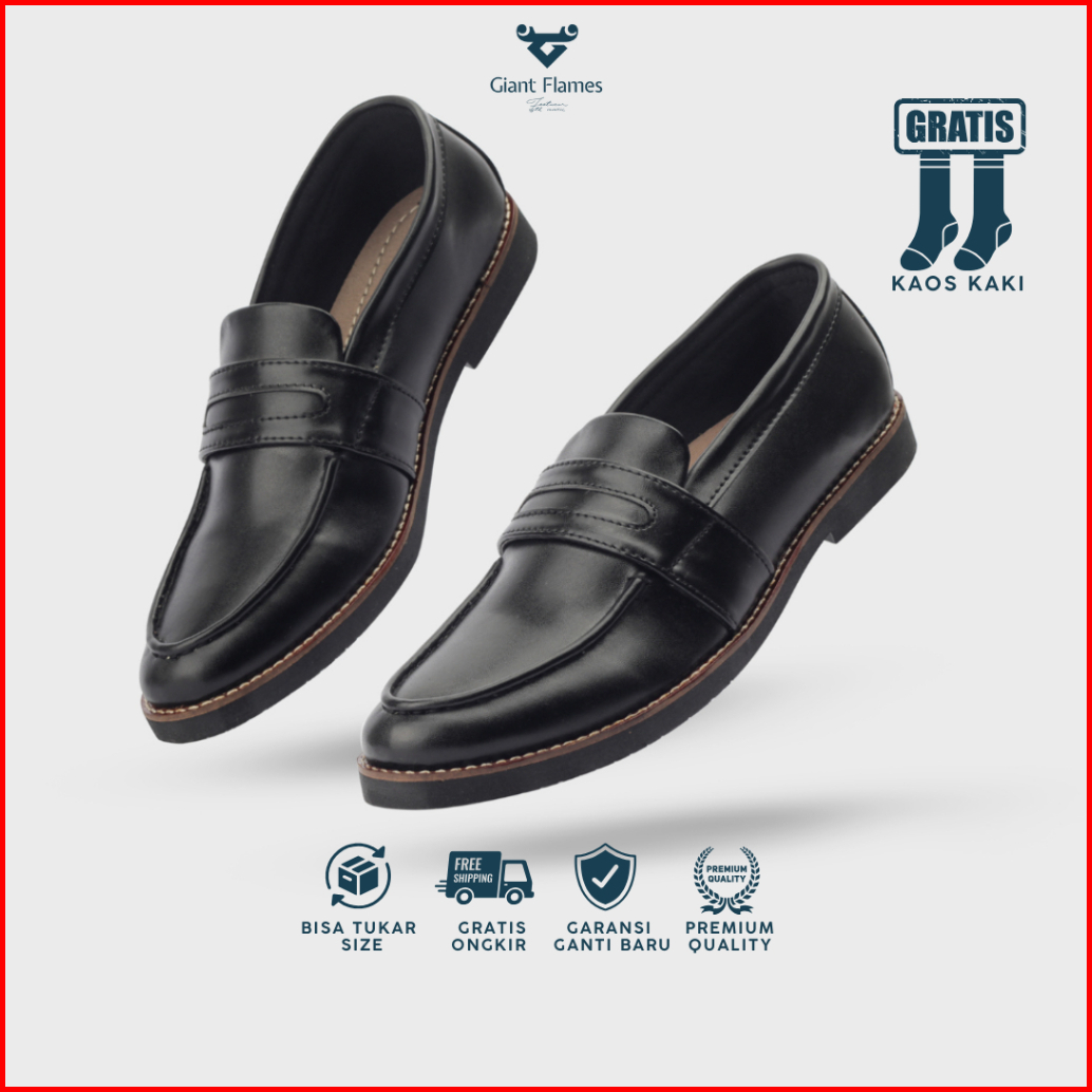 Giant Flames - Sepatu Pria Formal Kasual Loafers Slip On Kerja Kantor Harper Black Pantofel