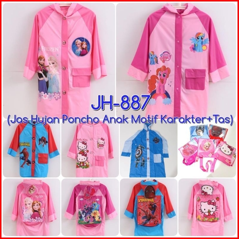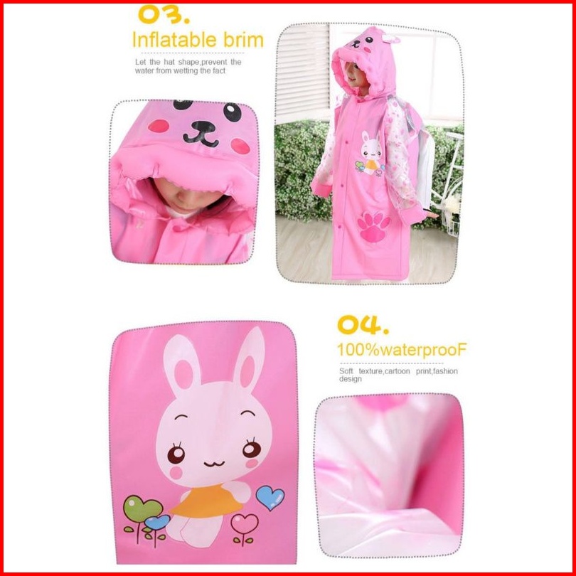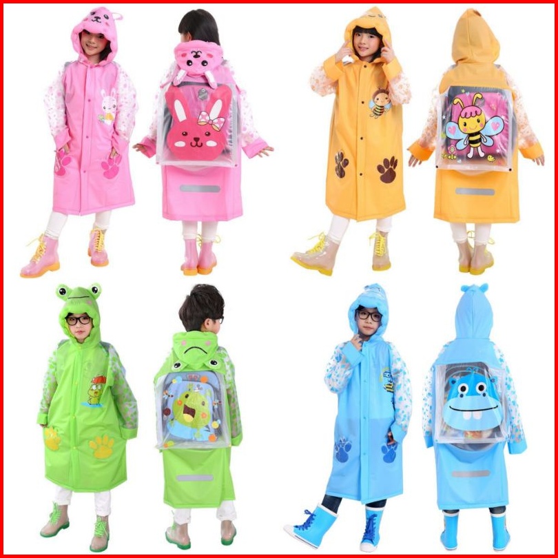 Jas Hujan Anak Karakter Terusan Lucu Backpack Tas - Mantel Mantol Anak Laki-laki Perempuan