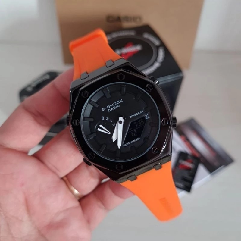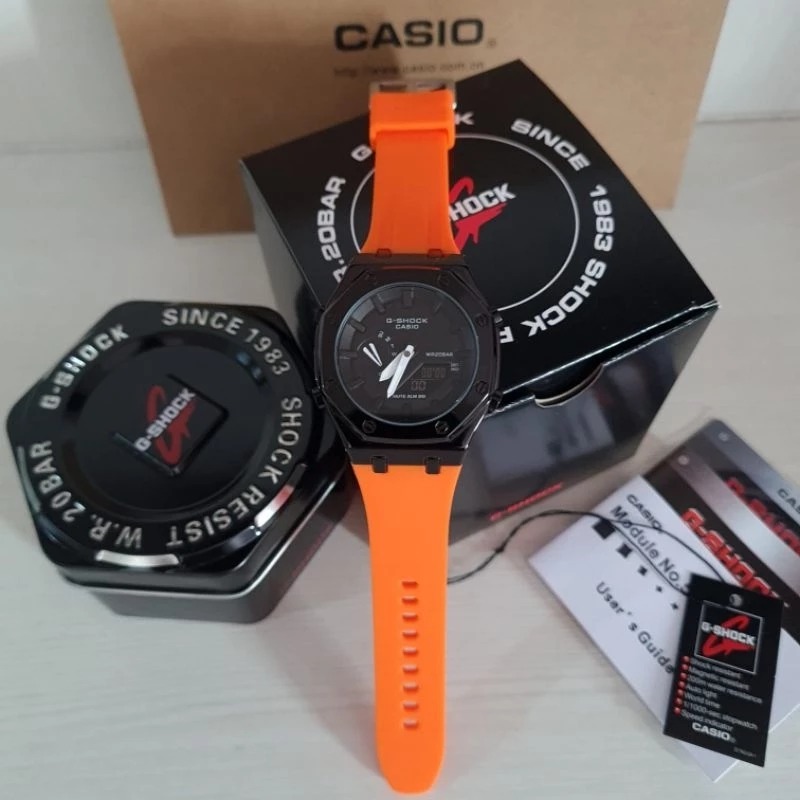 JAM TANGAN PRIA G-SHOCK GM-2100 BLACK ORANGE RUBBER FREE ONGKIR - FREE BOX