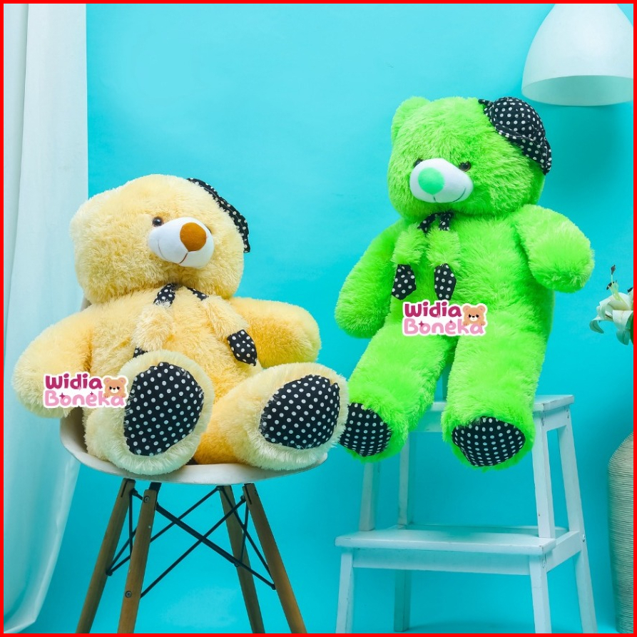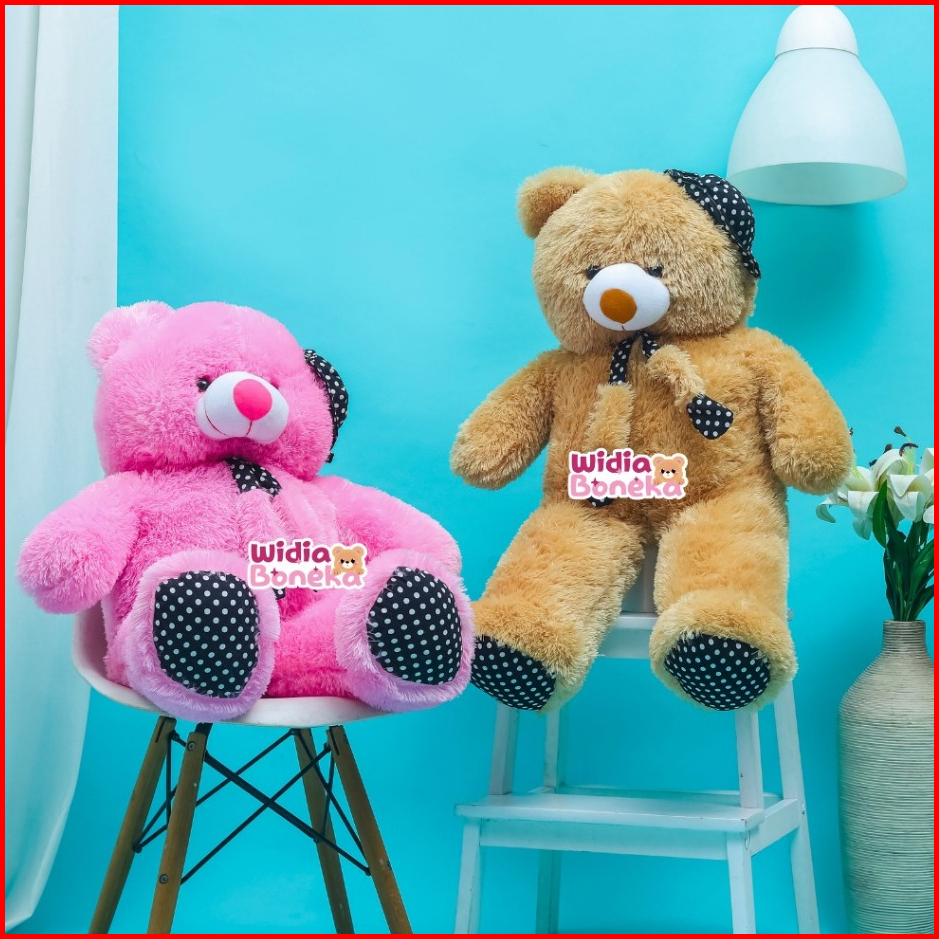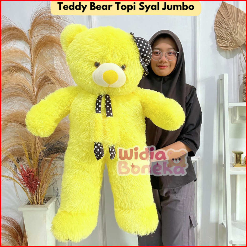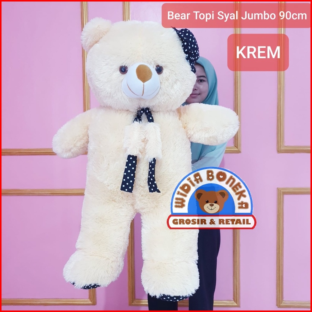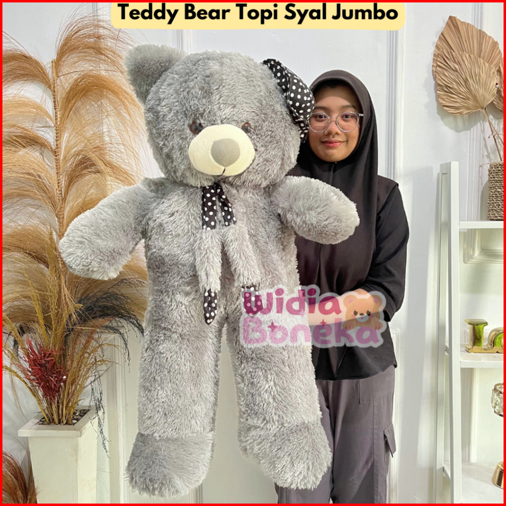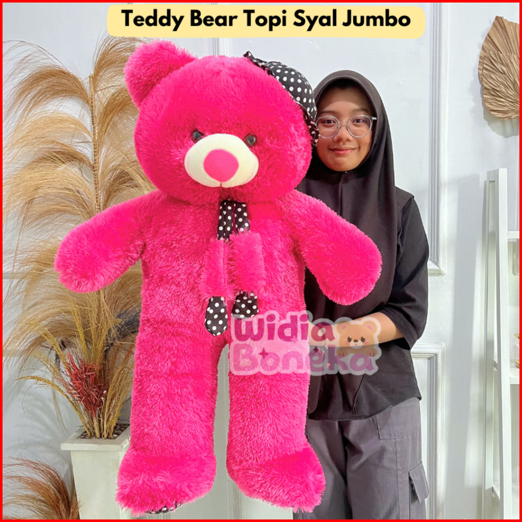 Boneka Teddy Bear Syal Topi Jumbo 90cm Bahan Rasfur