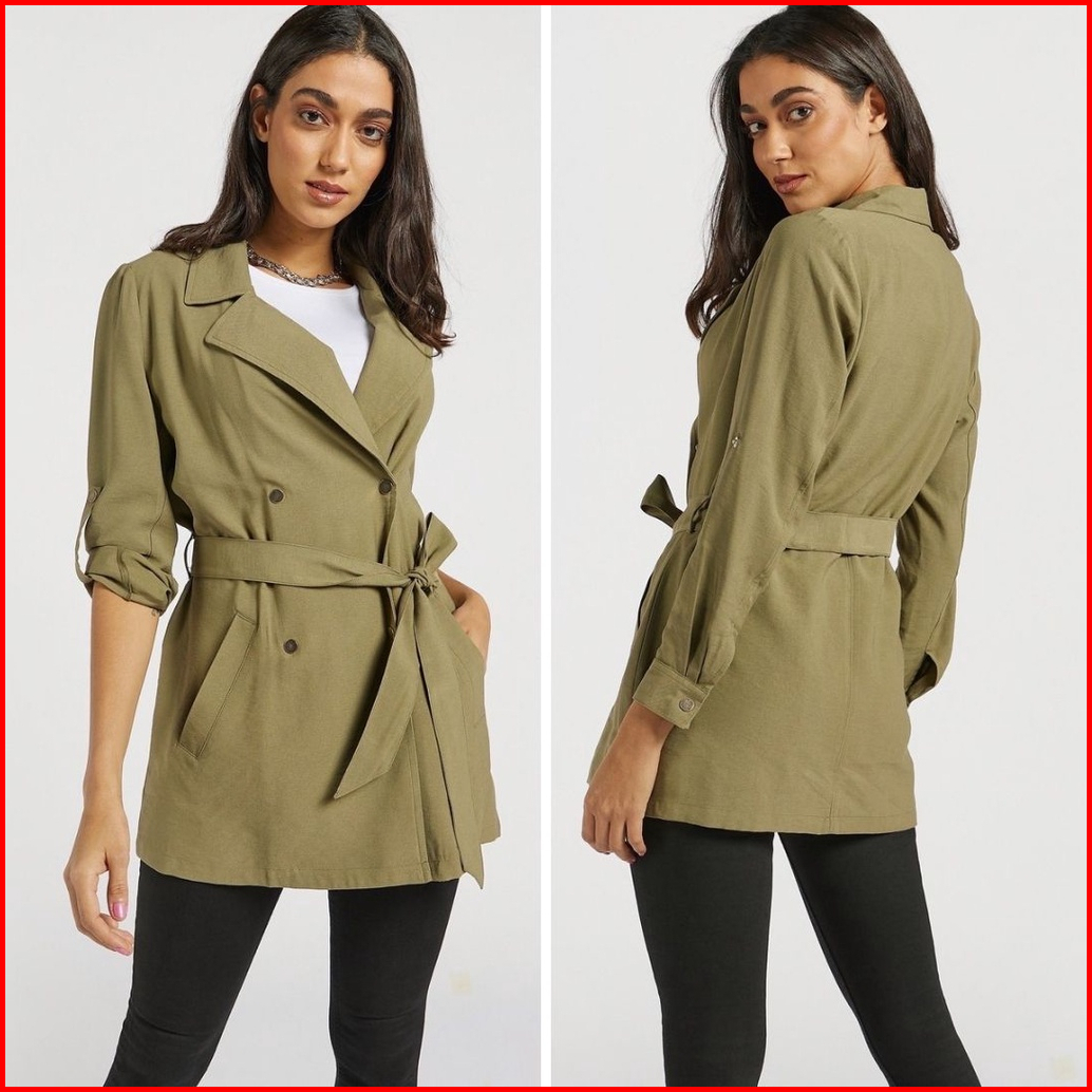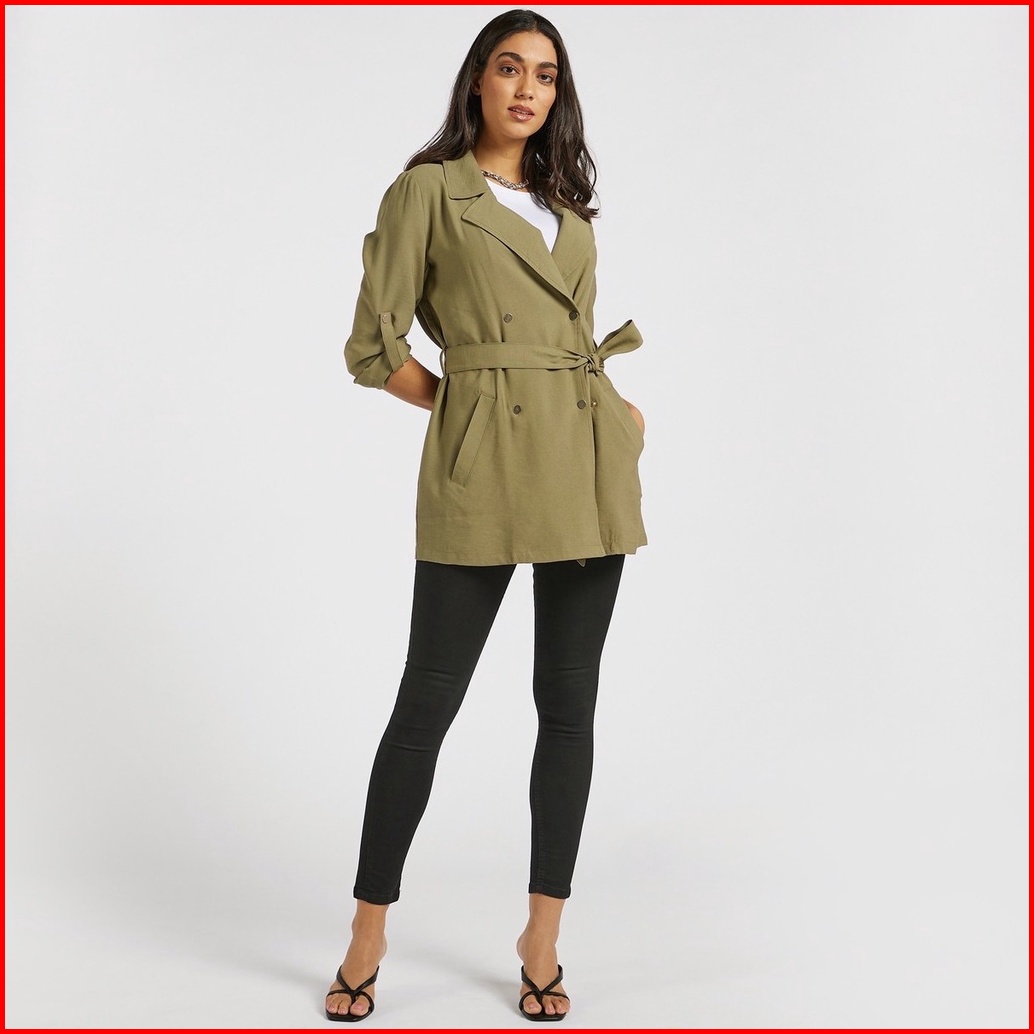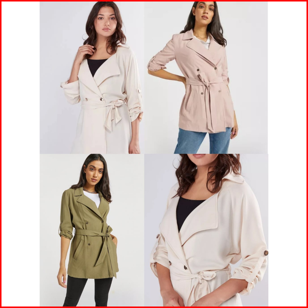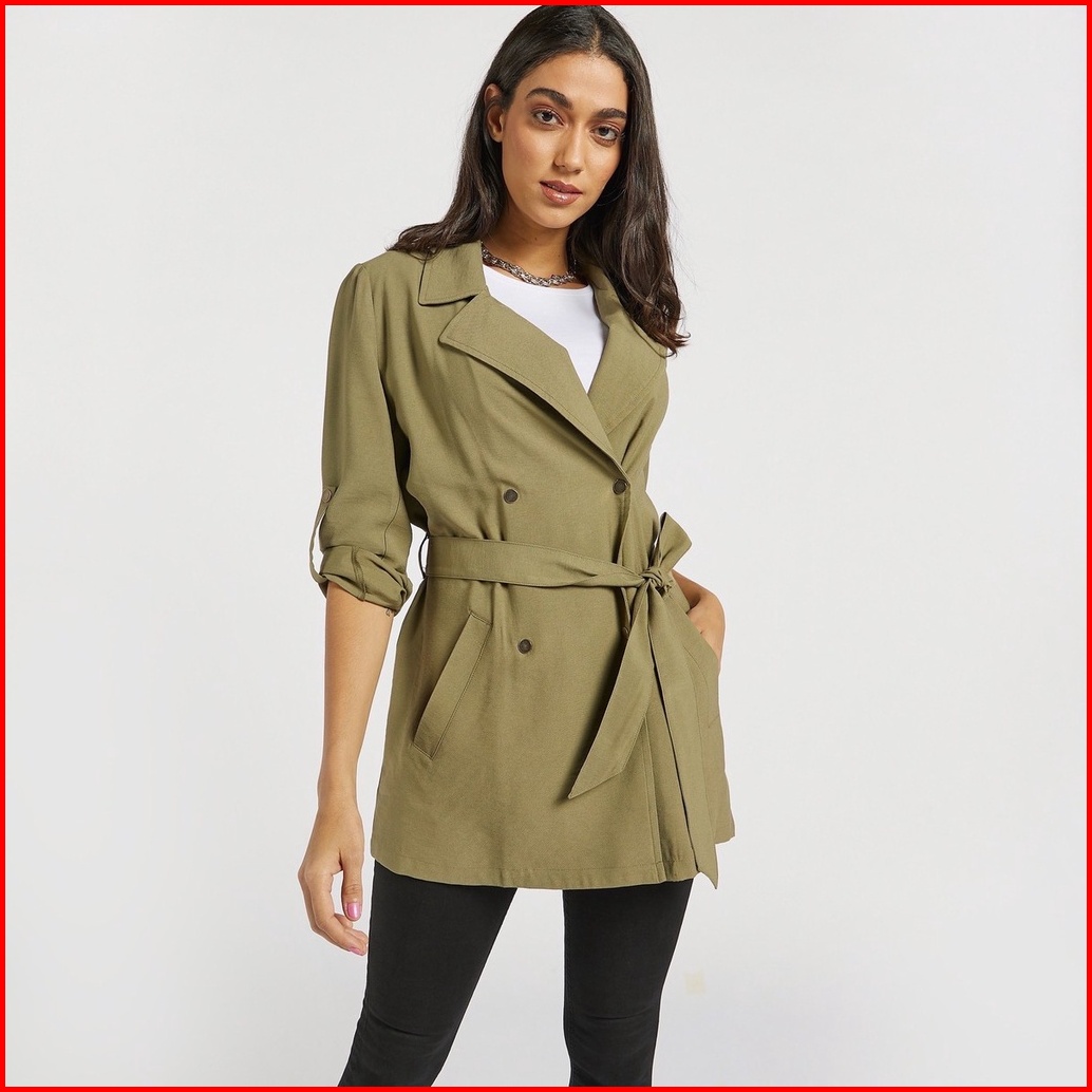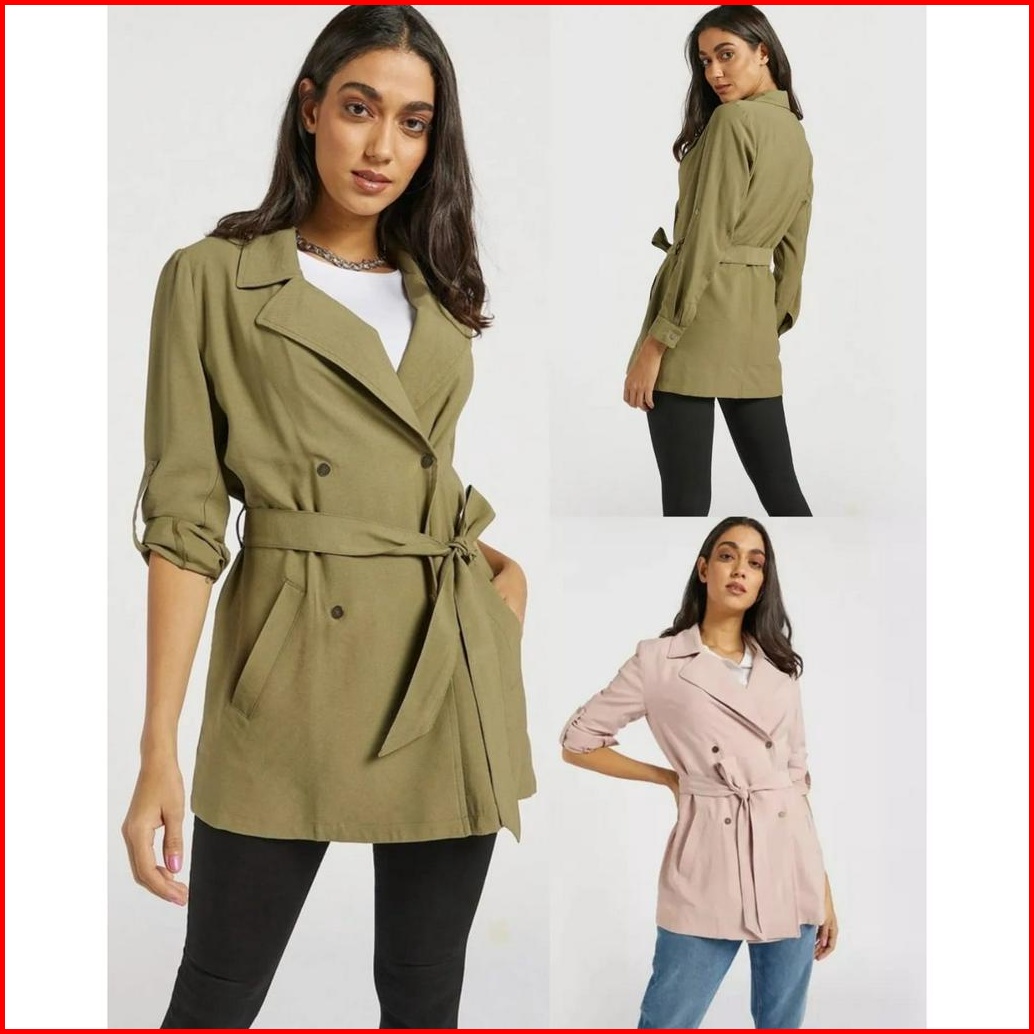 Coat Max Trench With Tie-up Belt Side Pocket Jaket Jacket Blazer Wanita Mx-2738