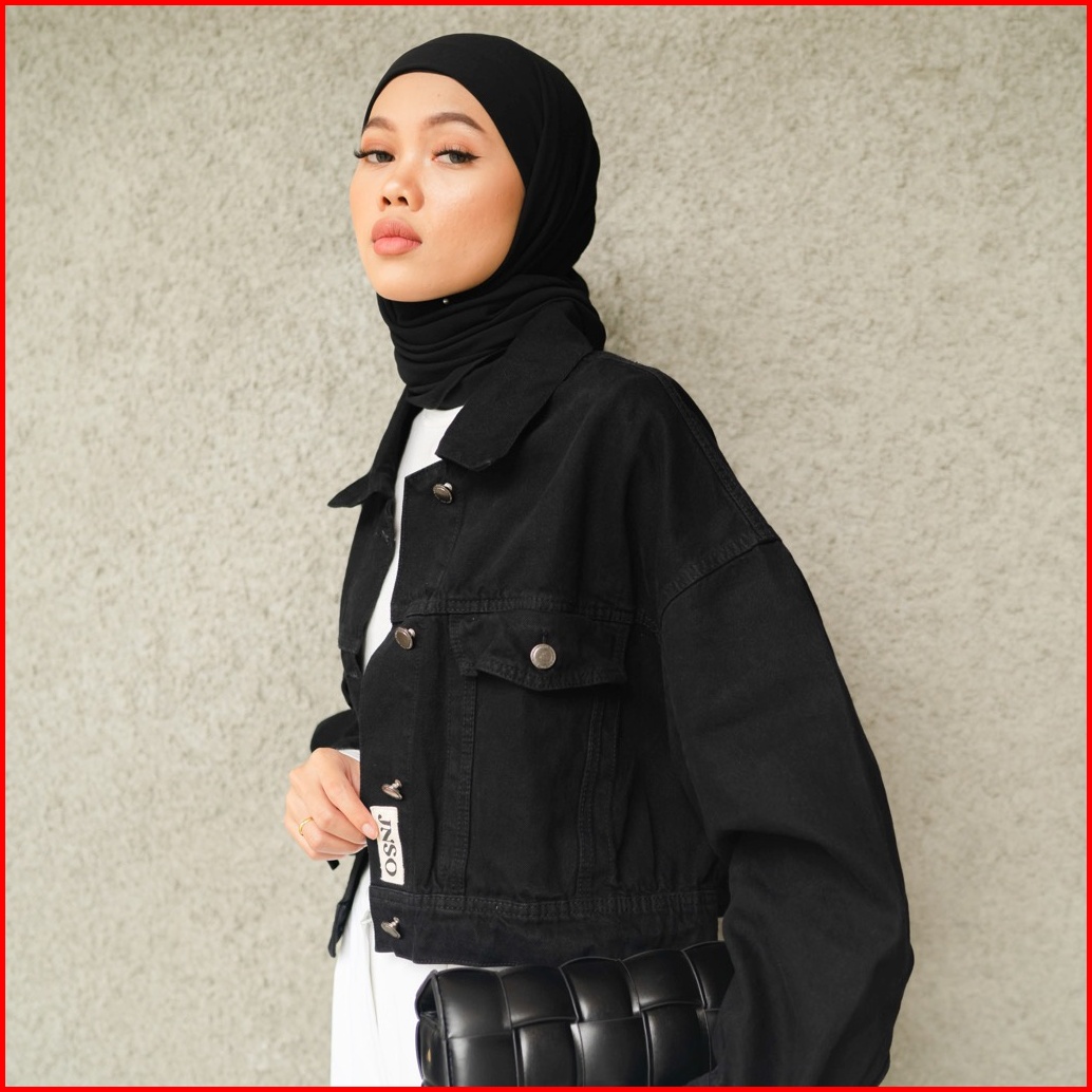 Jiniso Jaket Crop Jeans Oversize Urban Black
