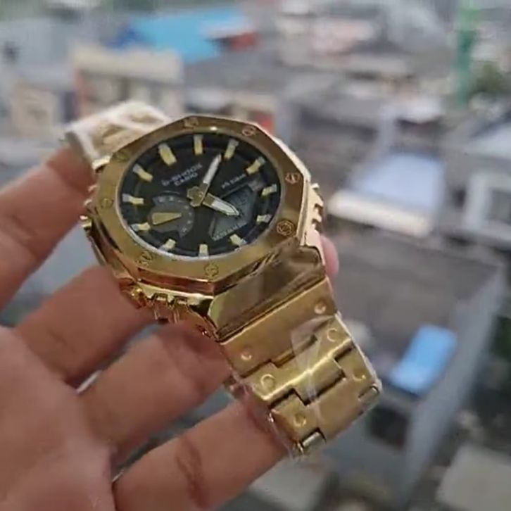 JAM TANGAN PRIA G-SHOCK GM-2100 ROSEGOLD DIAL BLACK STAINLESS STEEL FREE ONGKIR - FREE BOX
