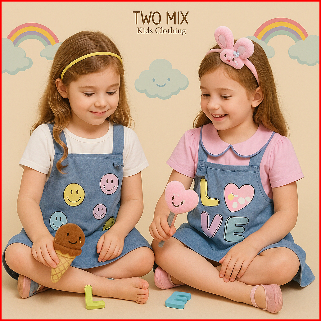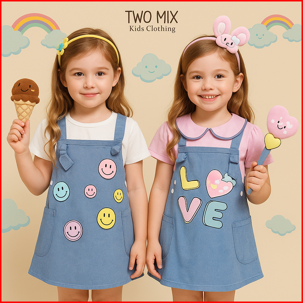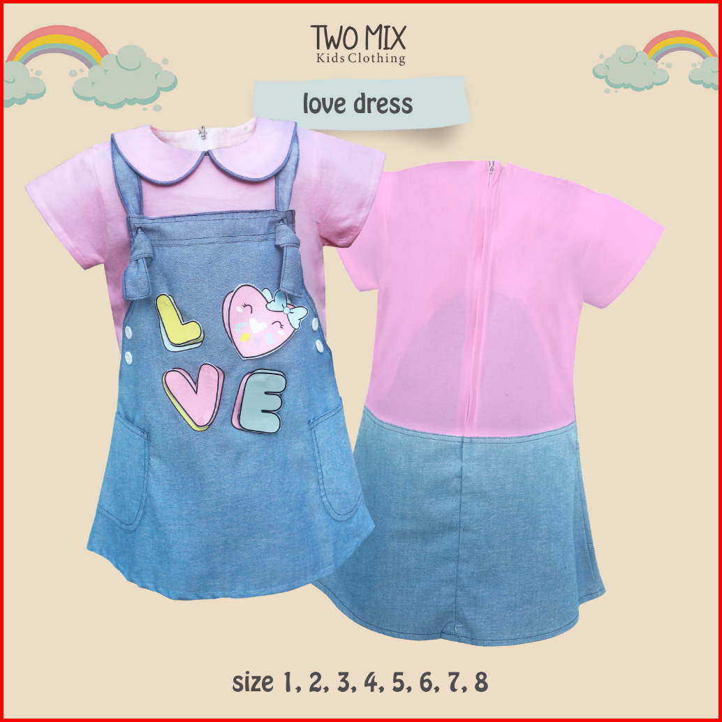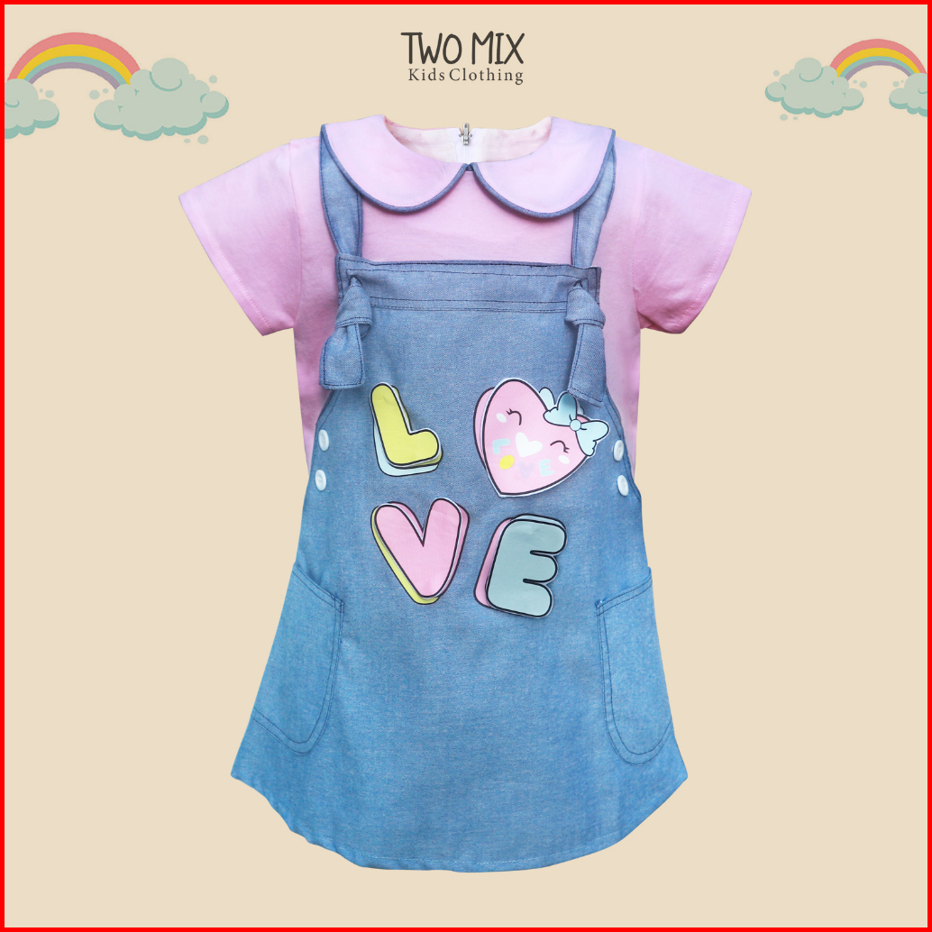 Two Mix - Dress Overall Anak Perempuan Lucu Smile Love Usia 1-6 Tahun - Baju Anak Cewek 4137c 4137b