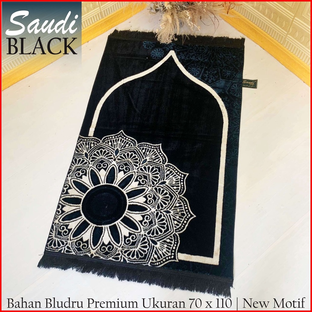 Sajadah Turki Premium Tebal Lembut Khusus Hitam Bunga Floral Saudi Terbaru